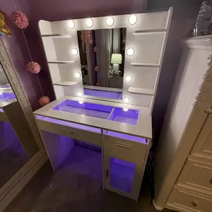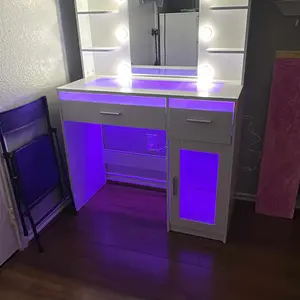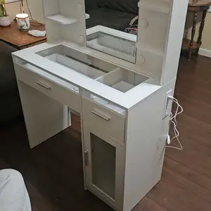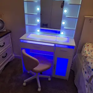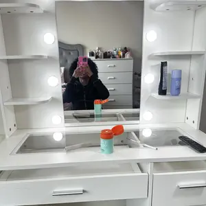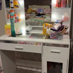 The vanity came in earlier than expected. It was very time consuming to assemble but it is worth it. It’s so nice and pretty. My daughter loves it started setting up her things quickly . You can change the lights and adjust the brightness as well