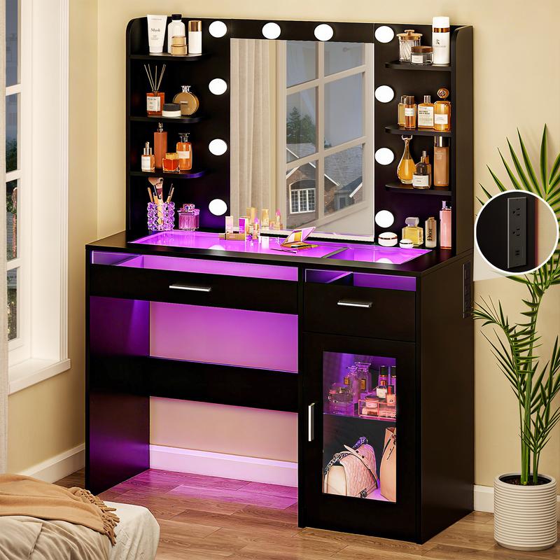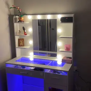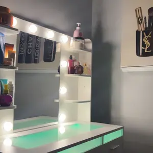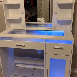 I absolutely love this makeup vanity — it’s become my favorite spot to get ready every day. The built-in lights around the mirror give the perfect lighting for doing my makeup, and the storage space keeps everything organized and easy to reach.