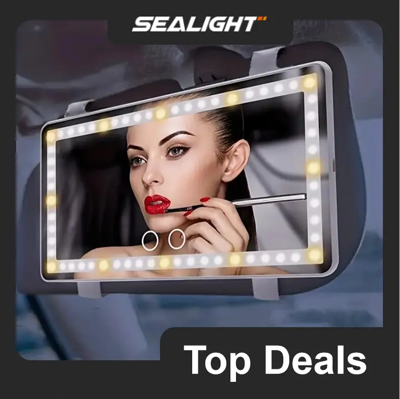 【Rechargeable LED Light】 : This car sun visor vanity mirror comes with a rechargeable LED light, providing a bright and clear view for makeup application.