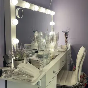 3 Lighting Modes: 12 Hollywood light bulbs is surround the large and clear mirror to meet your makeup needs; Vanity with lights includes 3 adjustable lighting modes: cold light, natural light and warm light,long pressing the switch can change lighting color; The makeup vanity will be the best partner for makeup, live broadcast or vlog recording