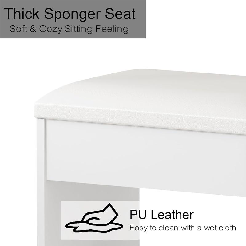 Vanity Stool: The cushion of this vanity stool is made of double-layer soft sponge and PU fabric, no need to worry about the discomfort brought by sitting for a long time; Vanity stool can be perfectly hidden in the bottom of the dressing table, fully save the occupied space