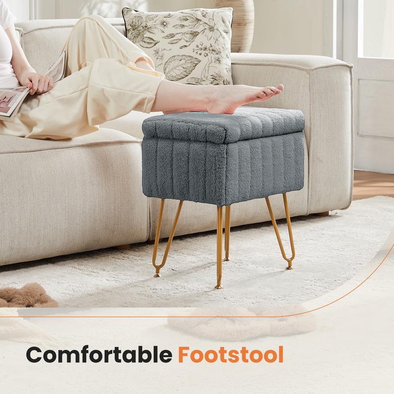 ·【Easy Assembly】: It’s very easy to assemble this storage makeup stool. Simply install the 4 stool legs and adjust the height of the feet to fit the floor, completing the setup in under 20 minutes!