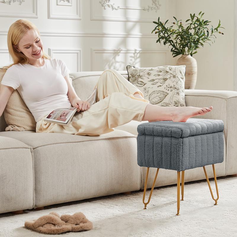 ·【Hidden Storage Space】: Enjoy a unique hidden storage space beneath the plush surface of the vanity stools makeup stool, offering approximately 10L of capacity volume. Perfect for storing various items discreetly, like makeups, cosmetics, magazine, and so on, saving valuable space.