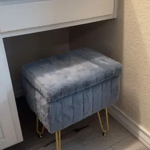 ·【Hidden Storage Space】: Enjoy a unique hidden storage space beneath the plush surface of the vanity stools makeup stool, offering approximately 10L of capacity volume. Perfect for storing various items discreetly, like makeups, cosmetics, magazine, and so on, saving valuable space.
