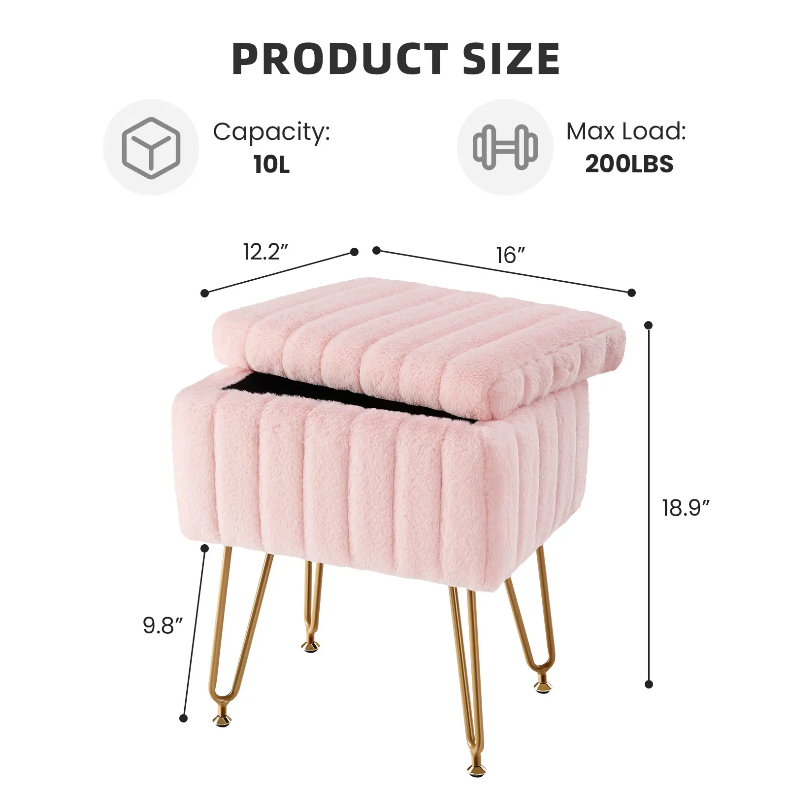 ·【Hidden Storage Space】: Enjoy a unique hidden storage space beneath the plush surface of the vanity stools makeup stool, offering approximately 10L of capacity volume. Perfect for storing various items discreetly, like makeups, cosmetics, magazine, and so on, saving valuable space.