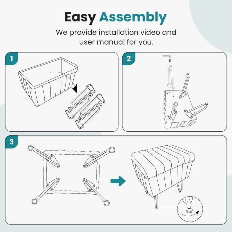 ·【Easy Assembly】: It’s very easy to assemble this storage makeup stool. Simply install the 4 stool legs and adjust the height of the feet to fit the floor, completing the setup in under 20 minutes!