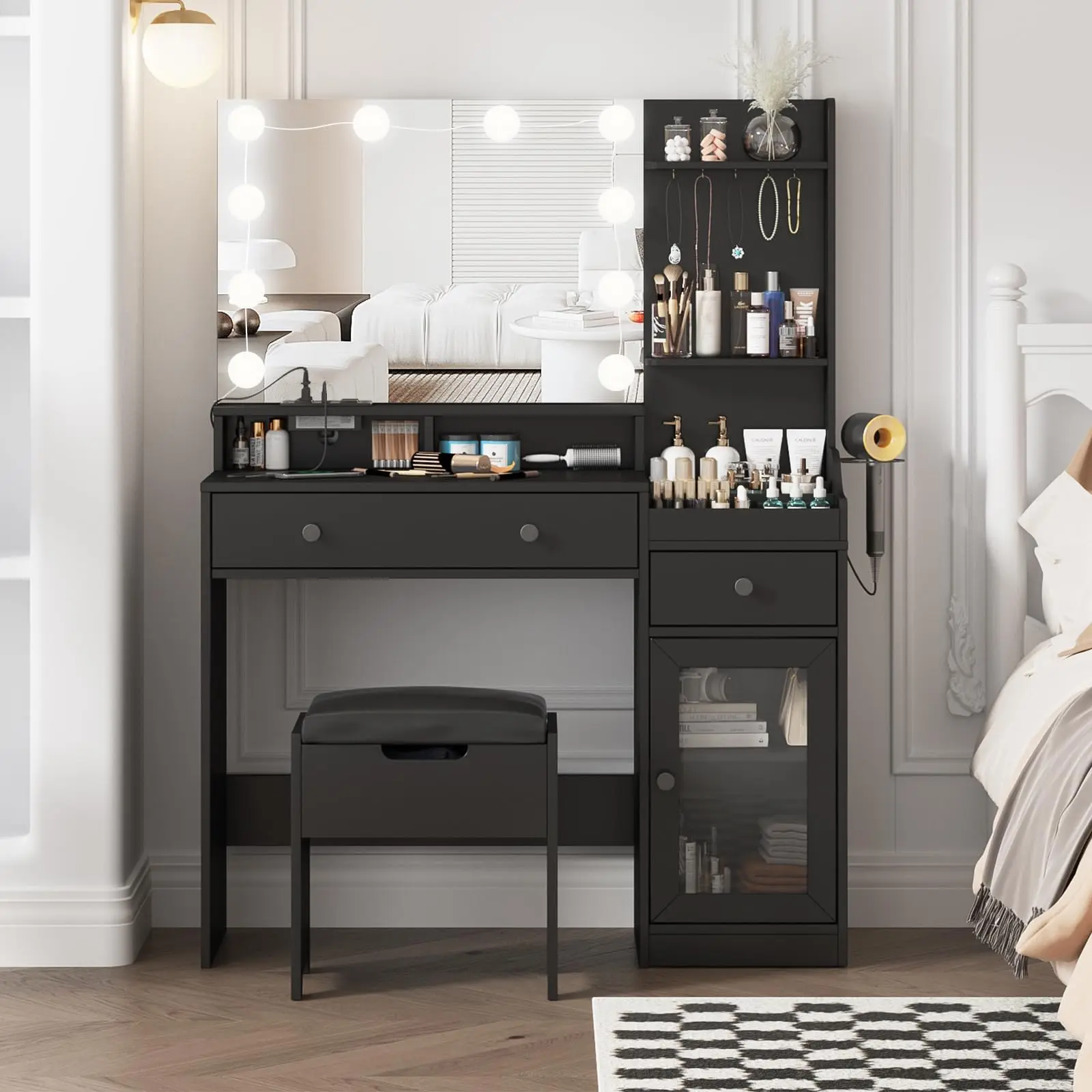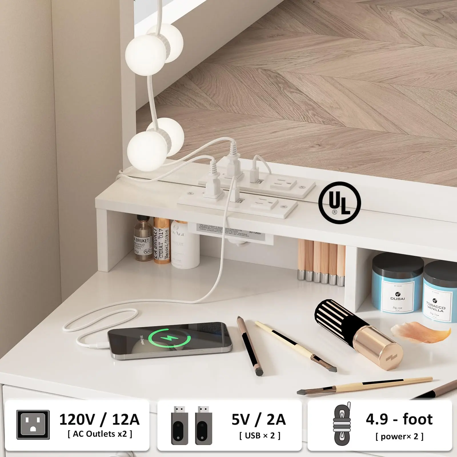Upgrade Functional Design: Built-in Charging Station, this makeup vanity add 2 standard plug sockets and 2 USB ports, you can easily use hair dryer, curling iron in front the large mirror, and charge your phone or other mobile devices during makeup. Nice make up vanity for bedroom, dressing room, salon or live broadcast.