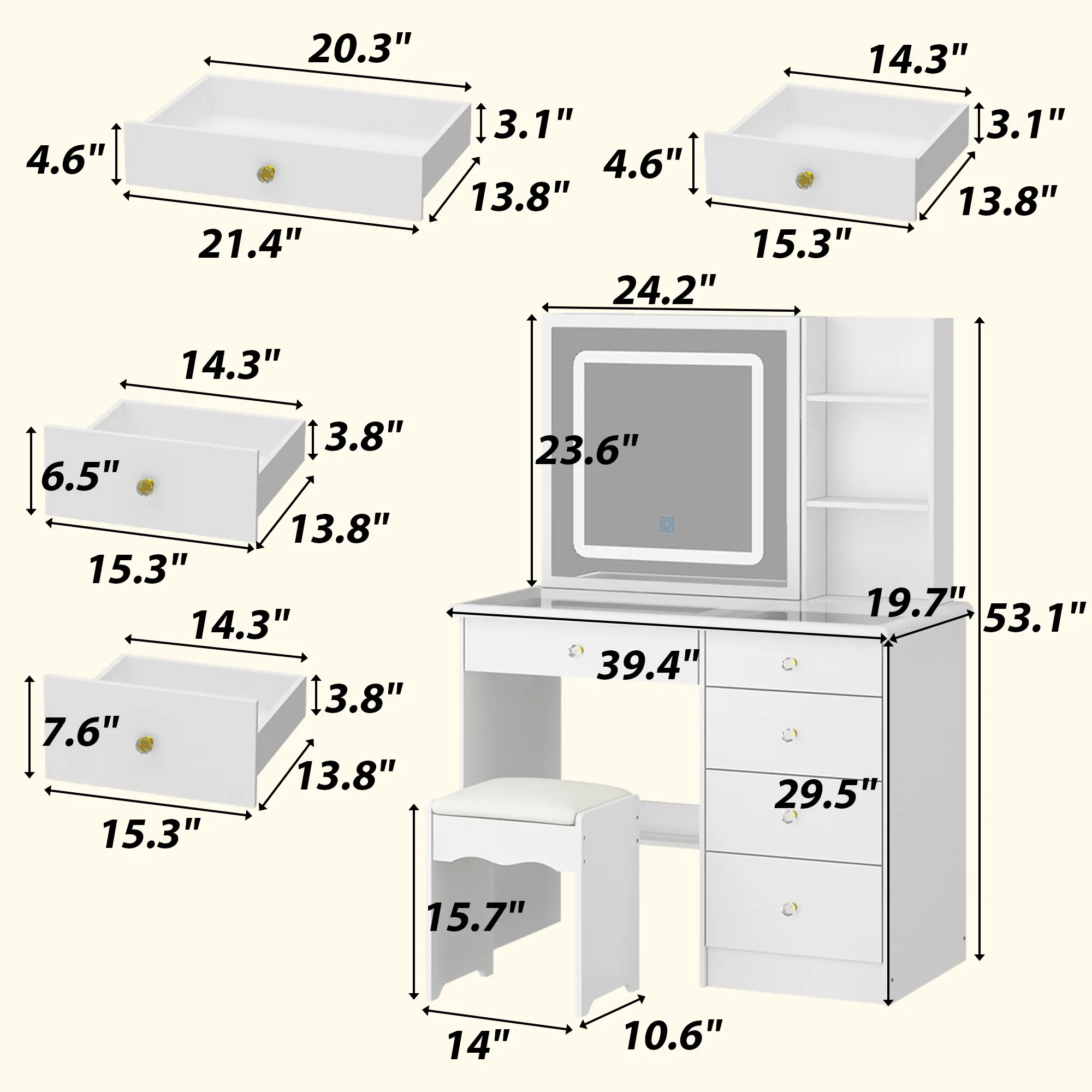 This is literally PERFECT! My 10 year old wanted a vanity for Christmas, and we could not be happier with the one I chose! It’s got so much space for all of her products, and more! It’s a great size, and easy to assemble! We love this!!