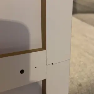 Ordered this vanity for my little sister for Christmas and as I was building the drawers I had noticed a piece of wood on my floor and seen that one of the drawers was damaged. As I was finishing building the vanity I had also seen that the desk top was cracked.