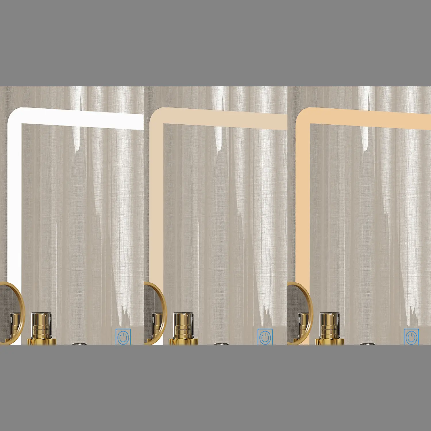 Large Sliding Lighted Mirror / White-A