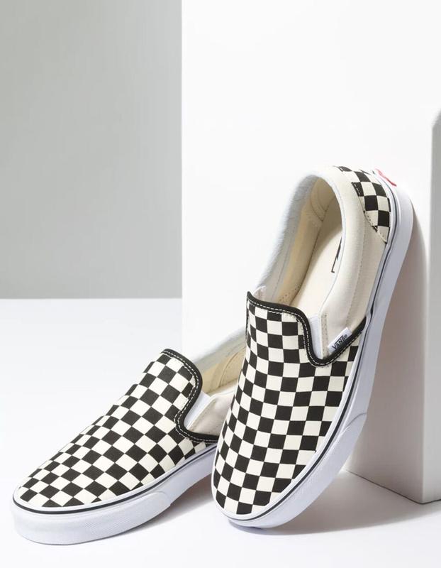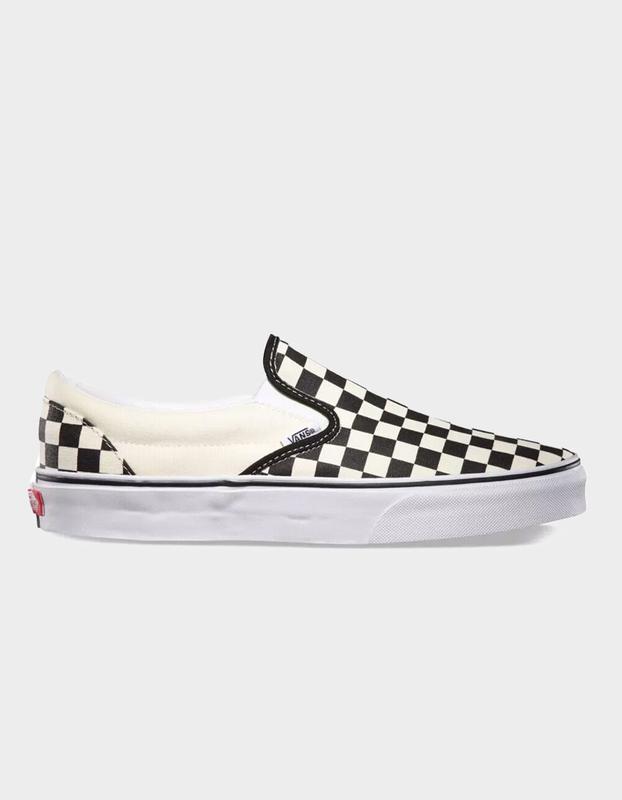 Vans Classic Slip-On has a low profile, slip-on canvas upper with all-over checker print, elastic side accents, Vans flag label and Vans original Waffle Outsole. Imported.