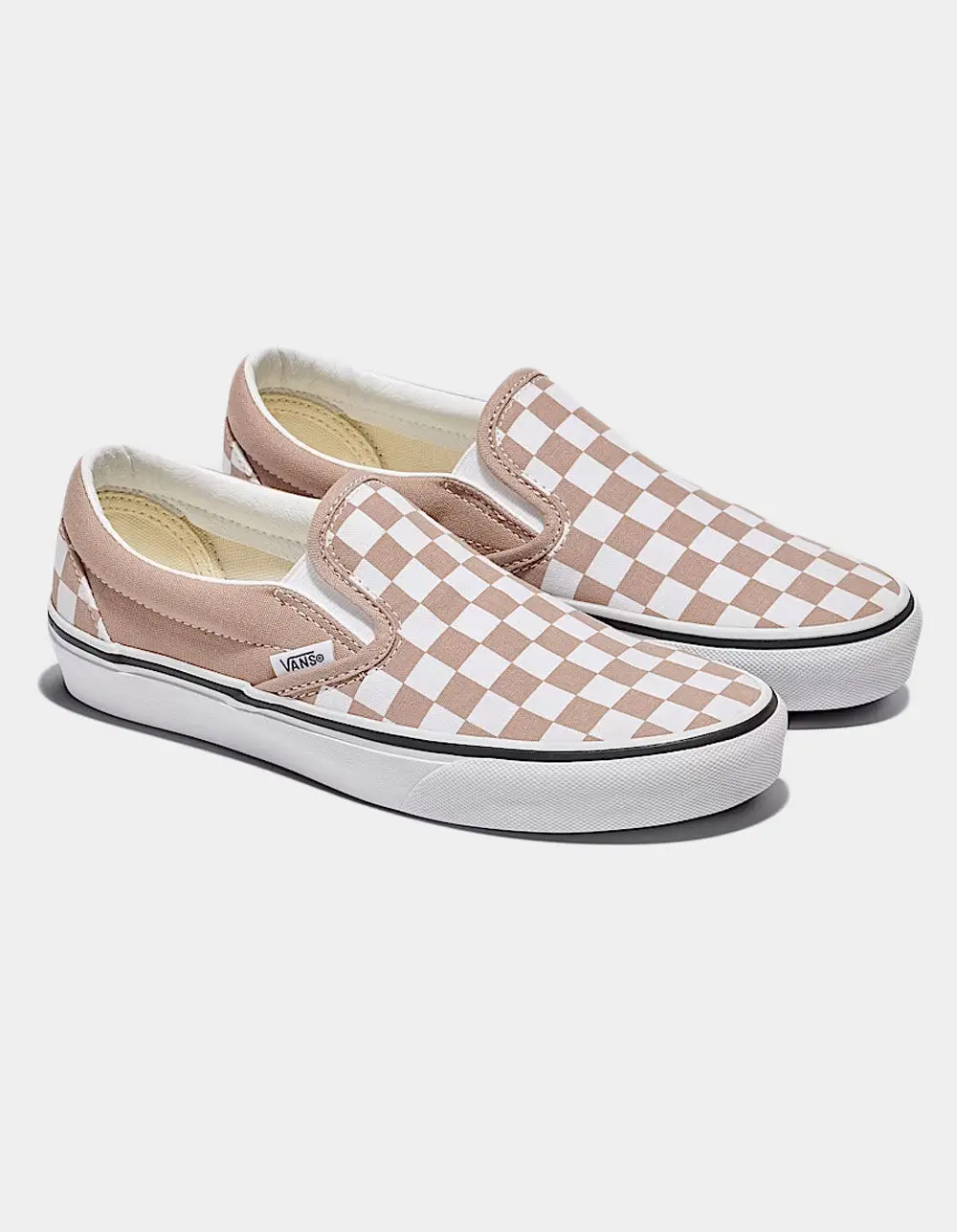 Vans Classic Checkerboard Slip-On Shoes. Iconic Slip-On shoe. Low profile canvas uppers. Classic checkerboard print. Supportive padded collars. Elastic side accents. Signature rubber waffle outsoles. Imported.