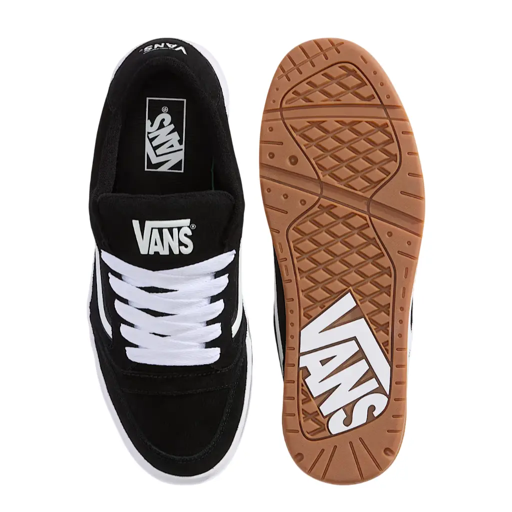 Vans Hylane 'Black White Gum' – Classic skate shoe with durable canvas upper, cushioned sole, and signature Vans logo. Available in US sizes 6-12. True to size for most foot shapes. Ideal for casual wear and light skateboarding. Comfortable fit with reinforced toe cap. Slight room in the toe box.
