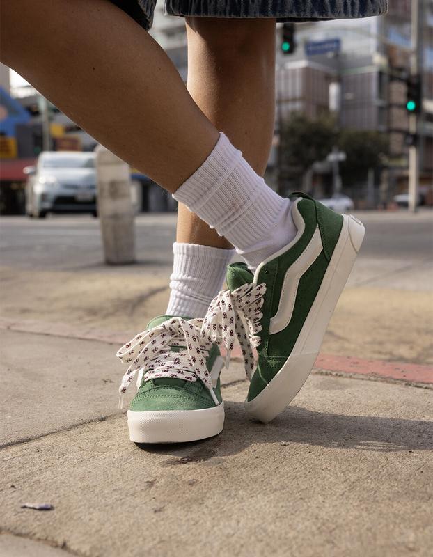 Vans Knu Skool Shoes. The Knu Skool is a modern interpretation of a classic 90s style, defined by its puffed up tongue and 3D-molded Sidestripe, and tied off with oversized, chunky laces. With its in-your-face profile and dramatic style details, the Knu Skool plays off of the original Old Skool™ while blending an icon of the past with today’s trends. Sturdy suede uppers. Puffy tongue and ankle collar. Puffy 3D molded Sidestripe™. Heel pulls for ease of entry. Signature rubber waffle outsoles. Imported.