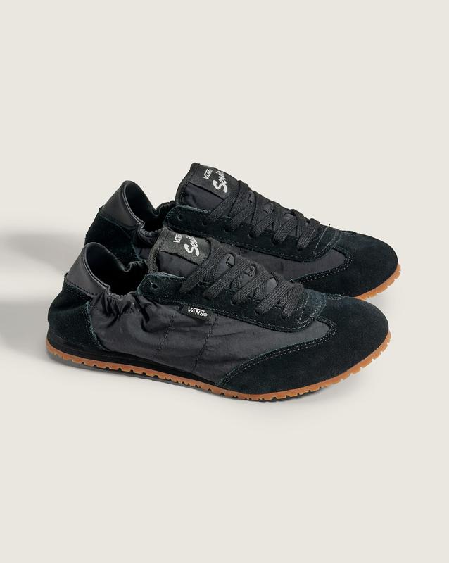 new favorite shoe! cute, sleek, comfortable and easy to dress up or down! vans never gets it wrong!!! Shape and size: size 7 woman’s, true to size, more narrow at the toe. Wearability: comfortable. Color: solid black shoe base, laces have a silver sparkle, so cute!.
