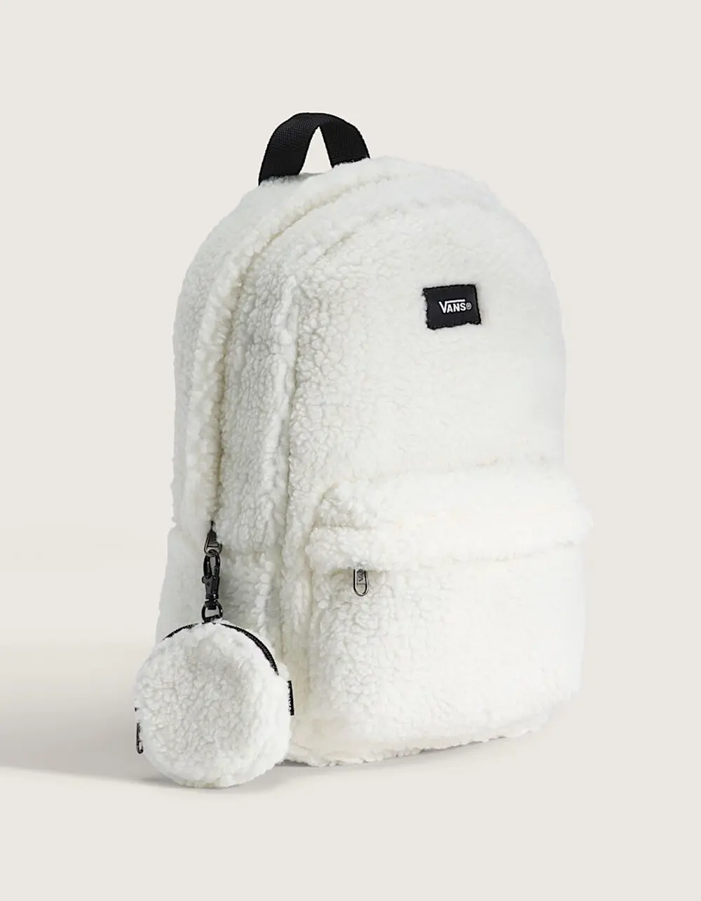 Vans Old Skool Mini Backpack. The Old Skool Mini Backpack proves that small doesn’t mean simple. Designed for grab-and-go ease, it features multiple zip pockets, interior organization, and a carry handle up top. It’s the pared-down pack that still pulls its weight. Mini zippered compartment for compact storage. Front lower pocket for quick access. Interior sleeve pocket keeps small items sorted. Interior key clip secures keys inside. Top carry handle for easy grab-and-go. Dimensions: 12.75in x 8.5in x 5in. Capacity: 12 liters. 100% Nylon shell. 100% Polyester lining with polyurethane coating. Imported.