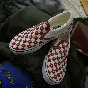 RED Rhinestone vans are you kidding me? They are amazing and perfect and true to size. @Tillys #vansoffthewall #vans #checkeredprint #sliponshoes #tiktokshopholidayhaul
