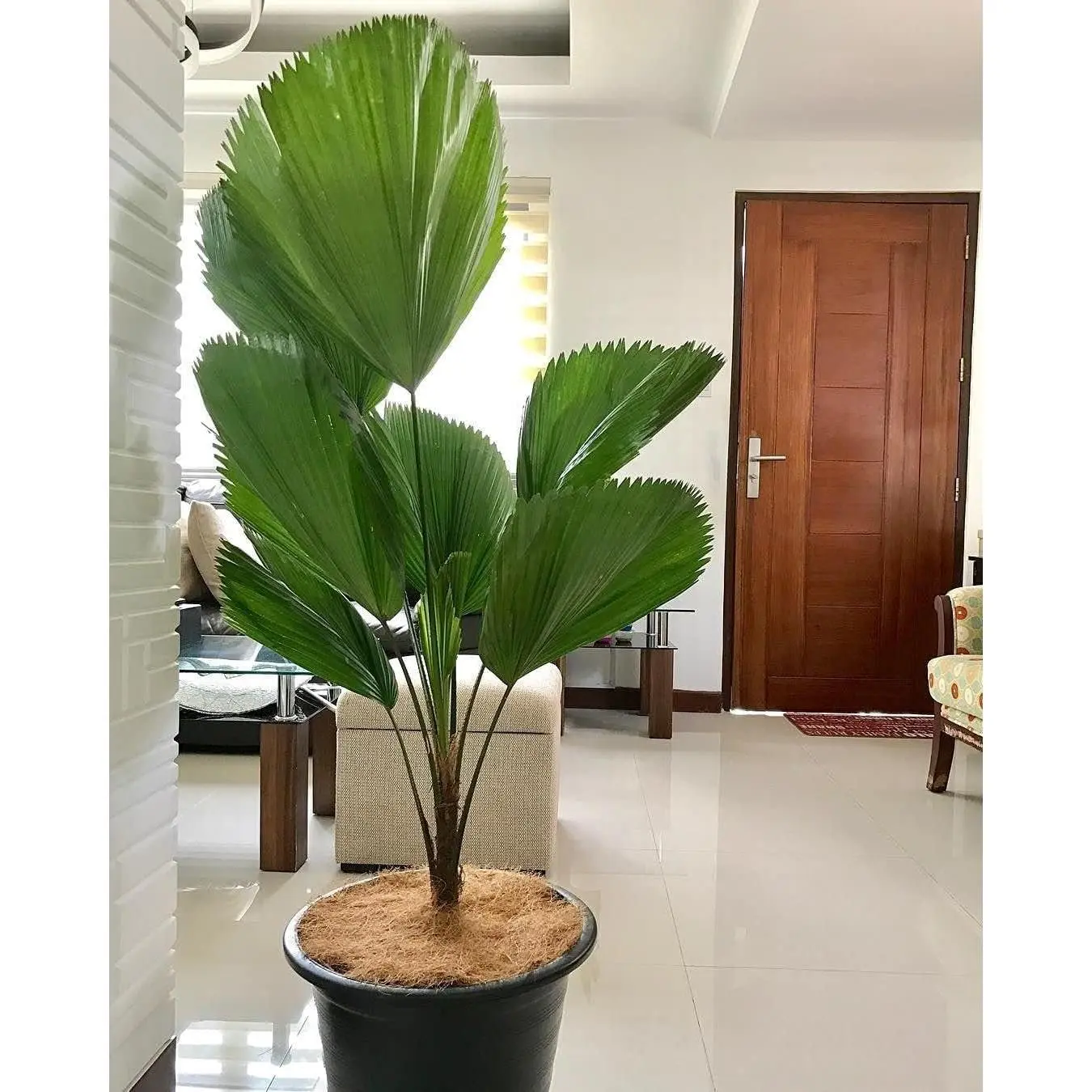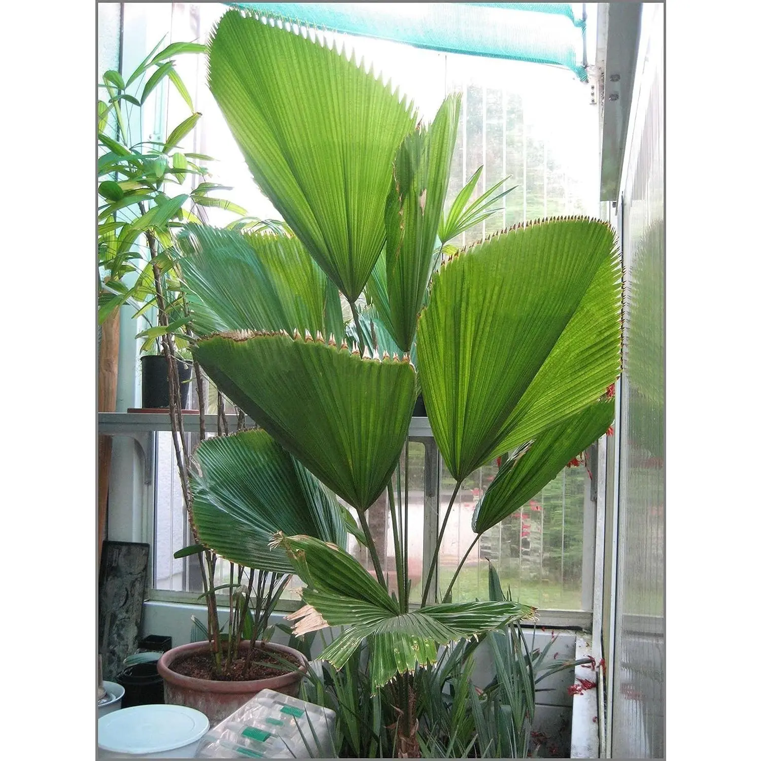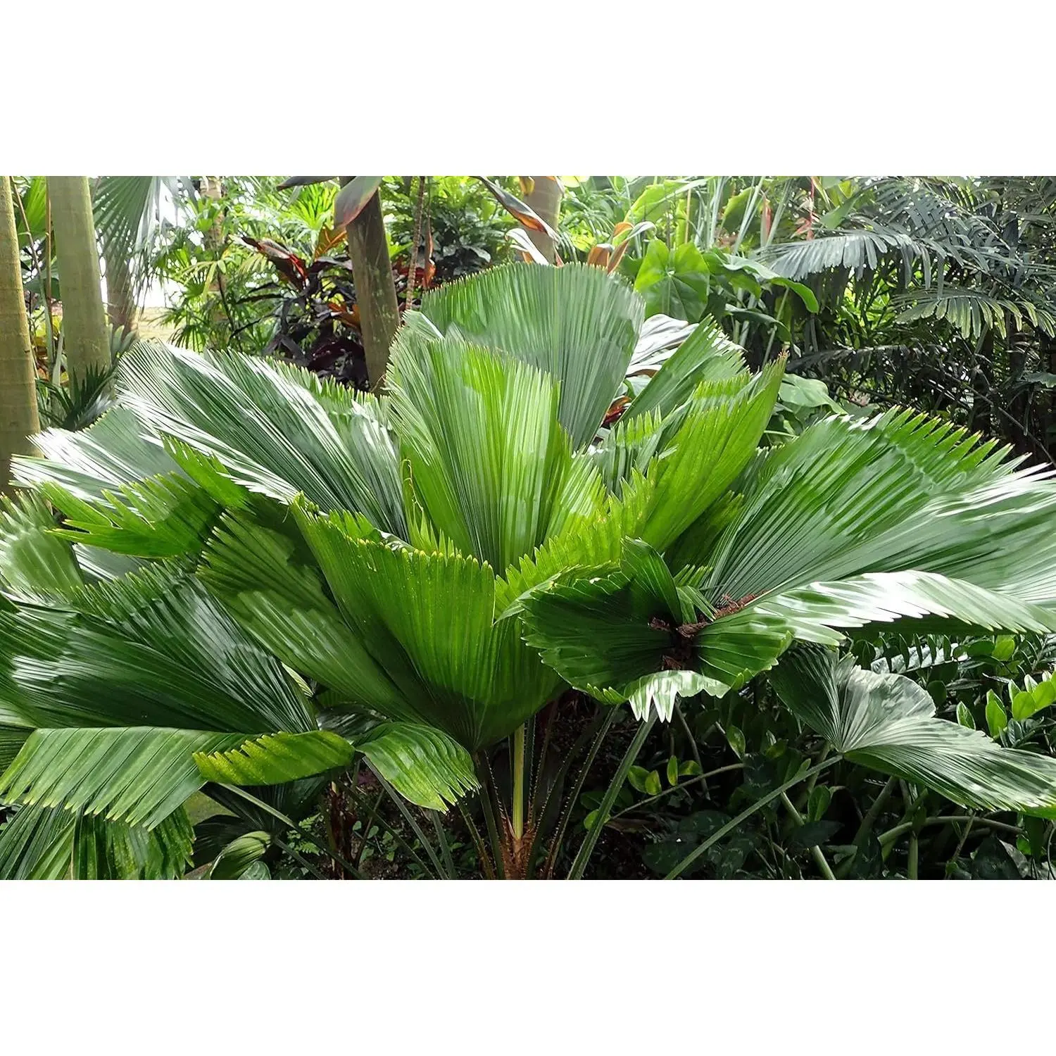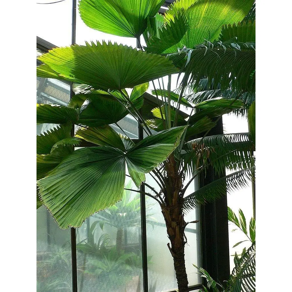 ● This lovely palm is popular in shady landscapes. It has distinctive ruffled, pleated, fan-shaped leaves, giving it an exotic and ultra-tropical appearance.