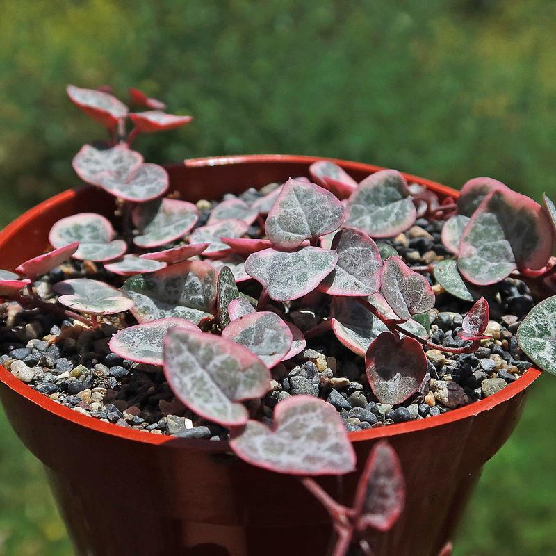 The heart-shaped leaves with purple undersides are just gorgeous, and they grow on these tough, wire-like stems that trail so nicely. And get this - those vines can grow up to 12 feet long.