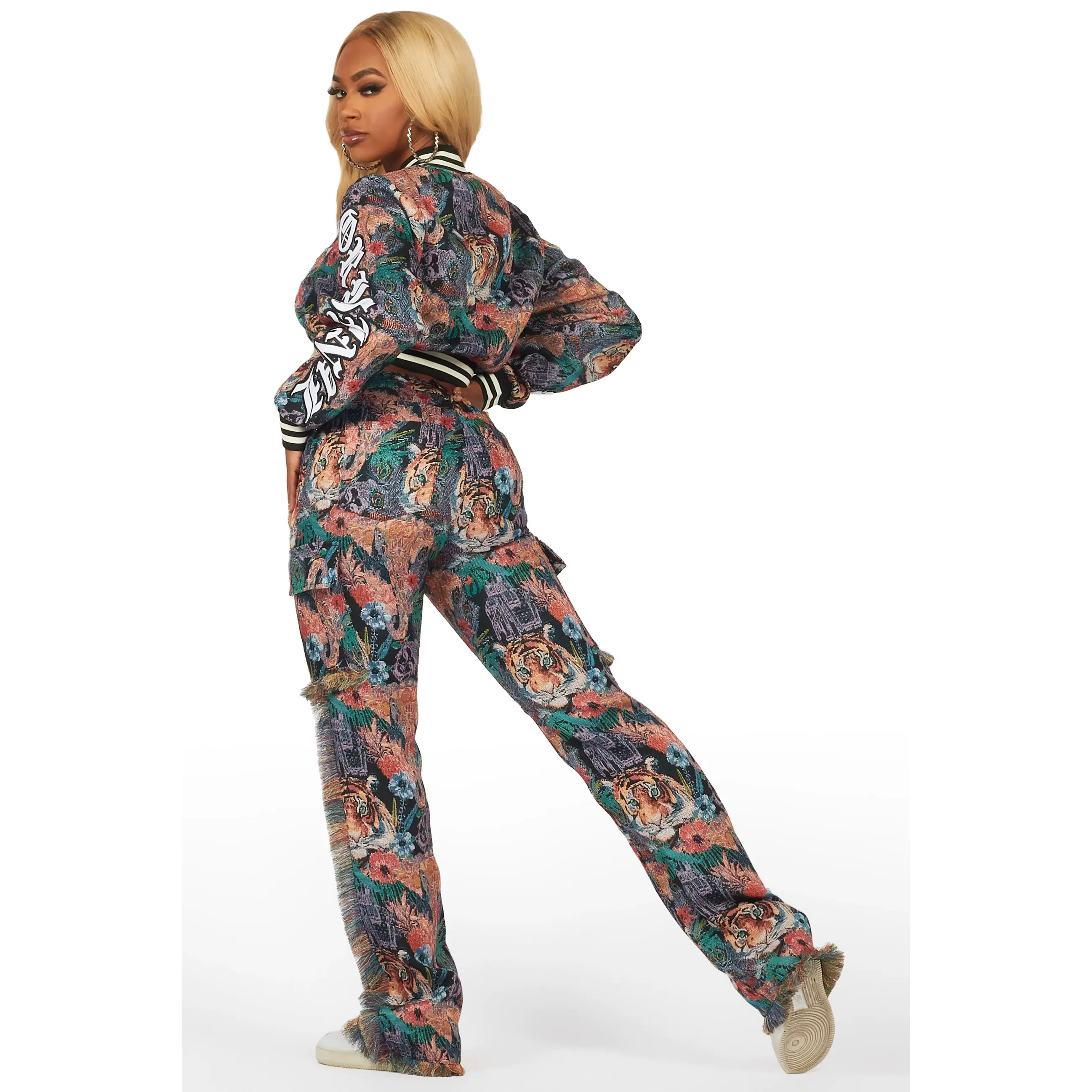 Khadiyah Red Crop Tapestry Varsity Jacket