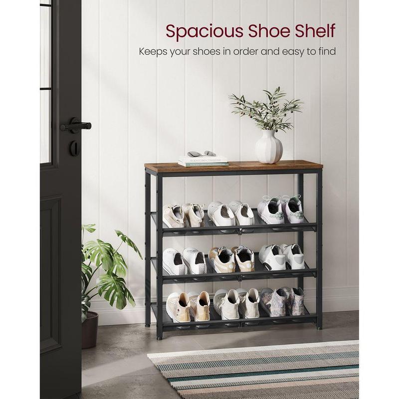 ·[Reliable Support] With a max. load capacity of 60 lb on the top surface, you can put bags, frames, books, and decorations on it; with a max. load capacity of 25 lb on each shelf, all your shoes can safely land on this rack