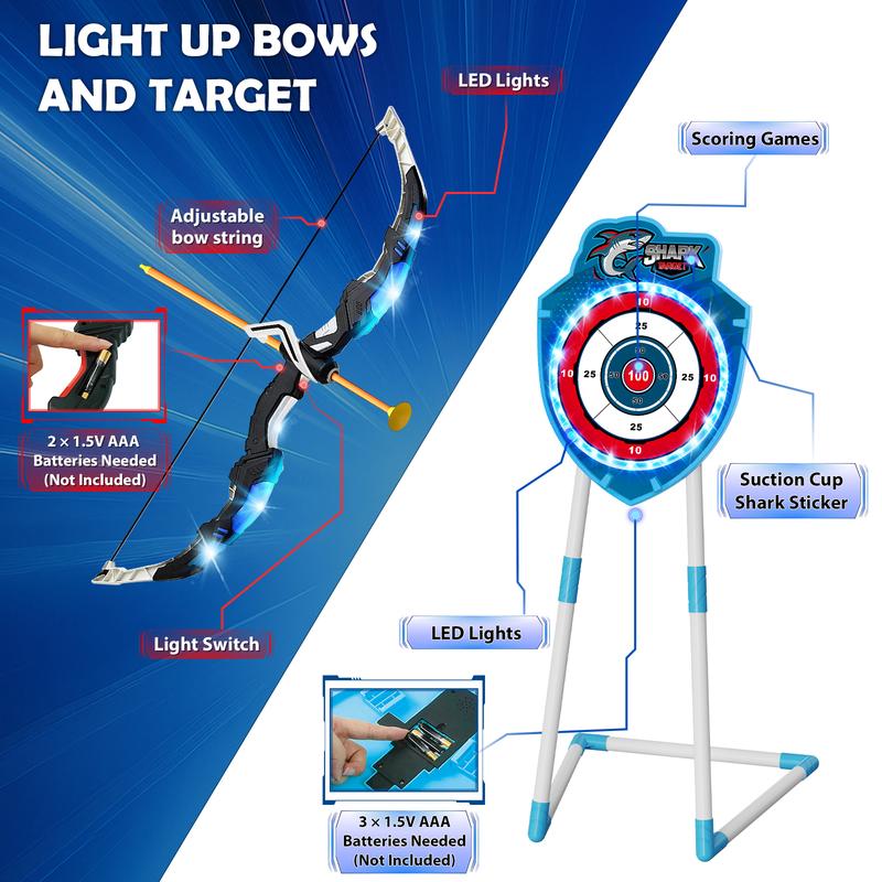 VATOS 2 Pack Bow and Arrow Toy with LED Light - 4 in 1 Archery & Dart Game Set with 20 Suction Cup Arrows, Shark Glow Target & Dart Board - Indoor/Outdoor Birthday Gift for Kids Boys Girls Ages 5-12VATOS 2 Pack Bow and Arrow Toy with LED Light - 4 in 1 Archery & Dart Game Set with 20 Suction Cup Arrows, Shark Glow Target & Dart Board - Indoor/Outdoor Birthday Gift for Kids Boys Girls Ages 5-12