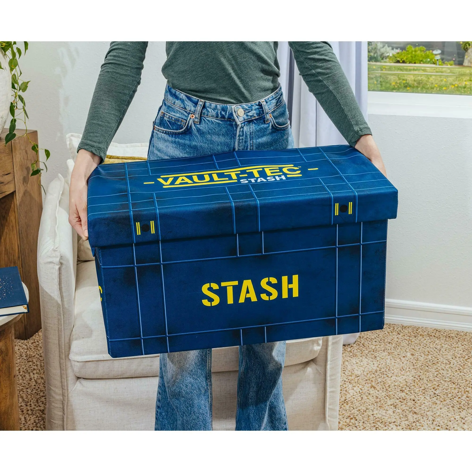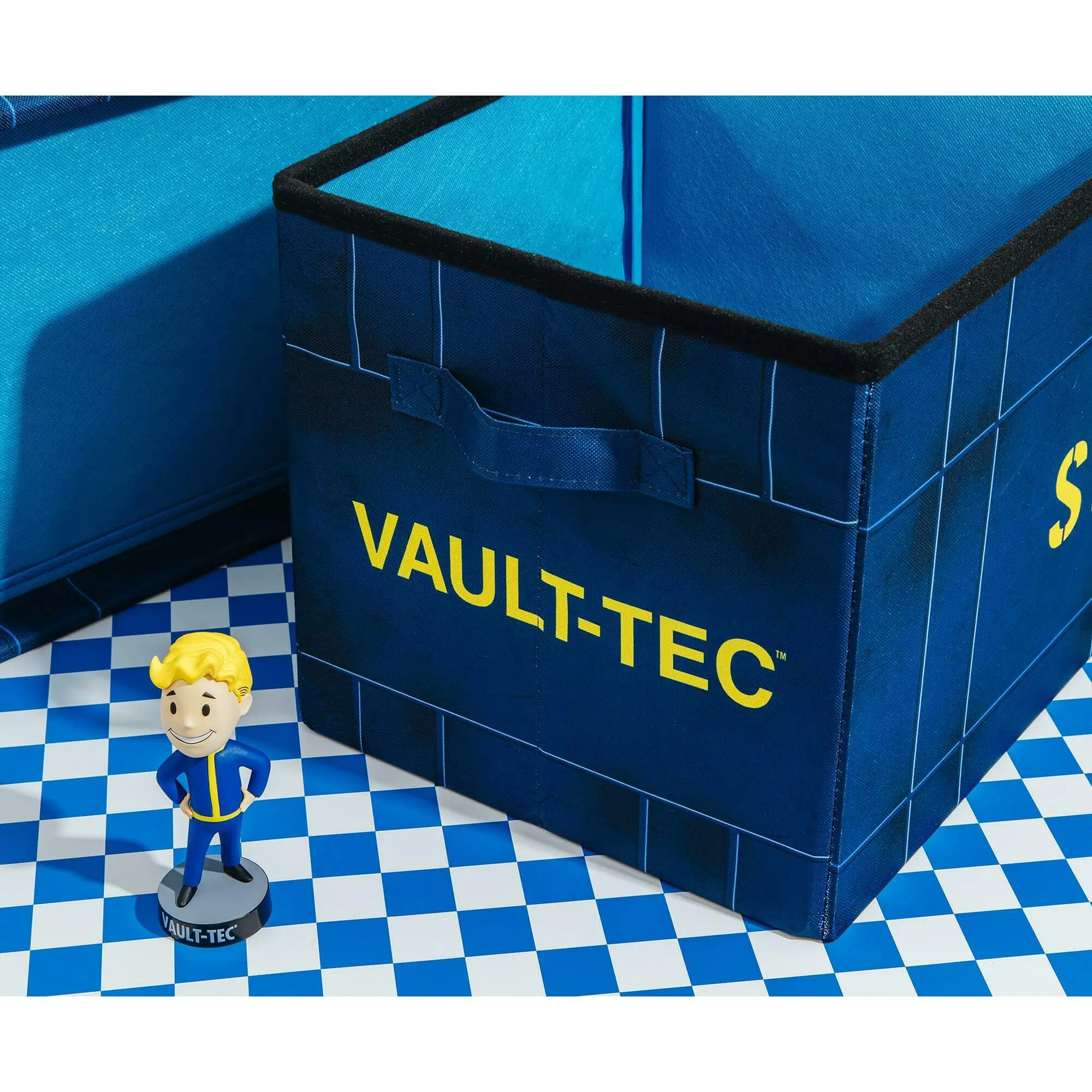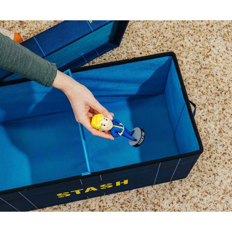 Whether you're tidying up your Vault or decluttering your settlement, this exclusive Fallout 76 Vault-Tec Fabric Storage Bin is your go-to container for storing your gear and other wasteland survival essentials. Designed to resemble an authentic blue Vault-Tec storage container, this bin blends the rugged aesthetic of the post-apocalyptic world with modern functionality.