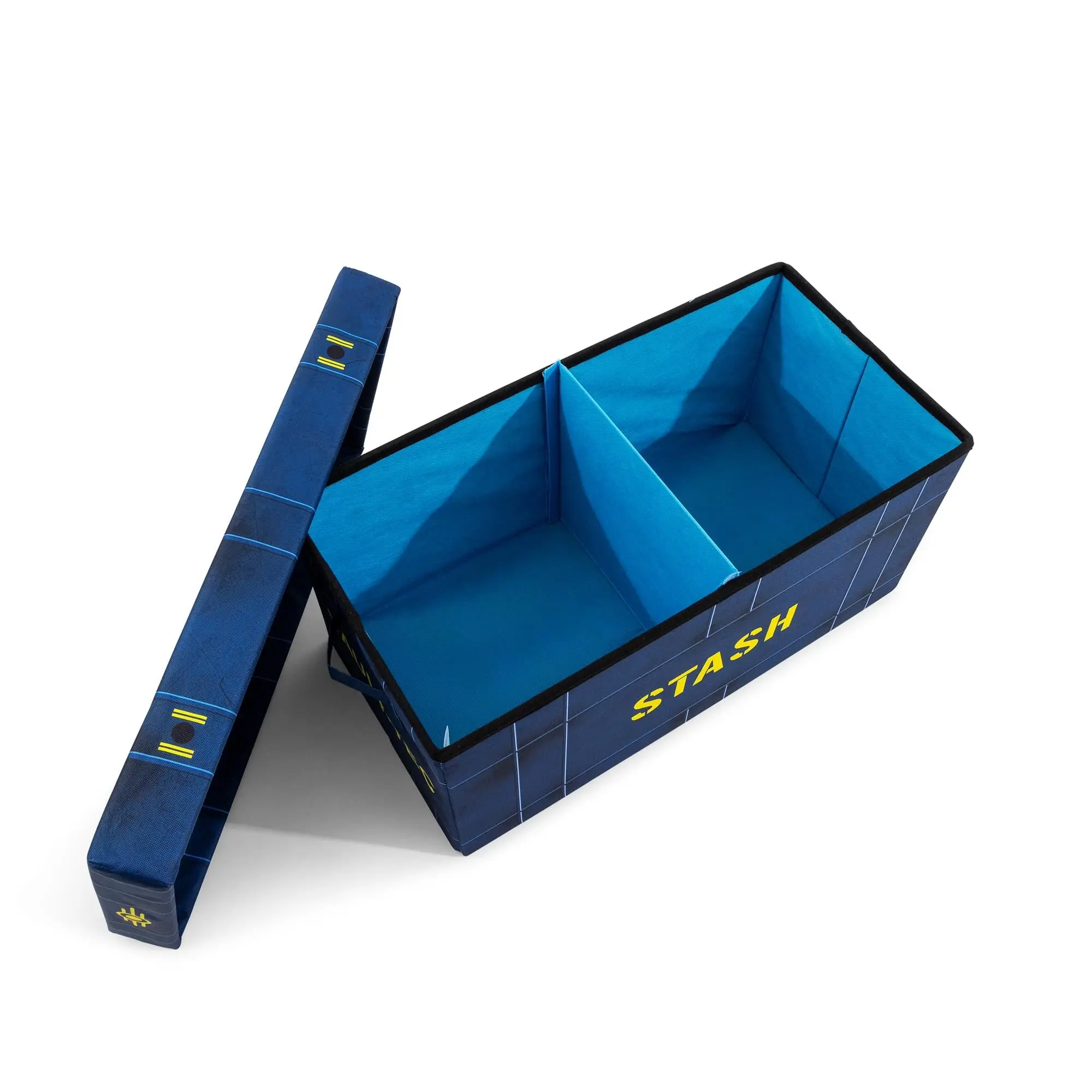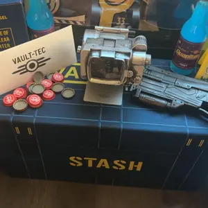 The quality fabric construction has the resilience needed to endure the harsh demands of the wasteland. The interior features a split compartment system under a snug-fitting lid, so you can sort your bottle caps from your workshop junk. Engineered with high-durability polyester and reinforced with a Vault-Tec-approved MDF insert. Perfect for organizing a variety of essentials from your personal inventory, including clothing, collectibles, gaming accessories, or even real-world caps.