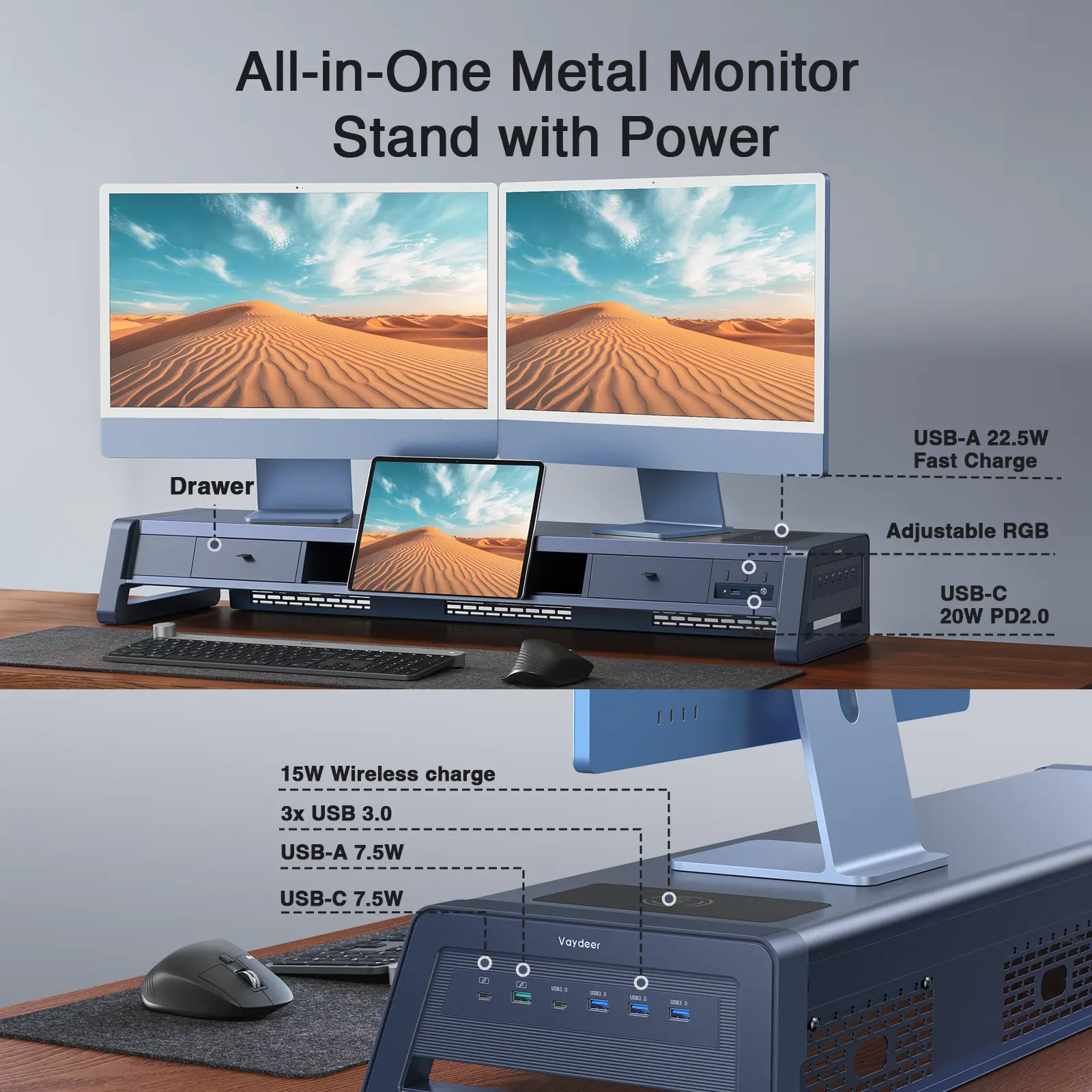 Was looking to replace my current monitor stand & came across this unit. Got it yesterday & put it up. Built in wireless charging pad is only 7.5 watts output which is a bit disappointing but overall I'm happy with the stand.