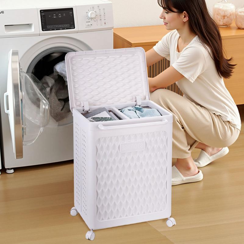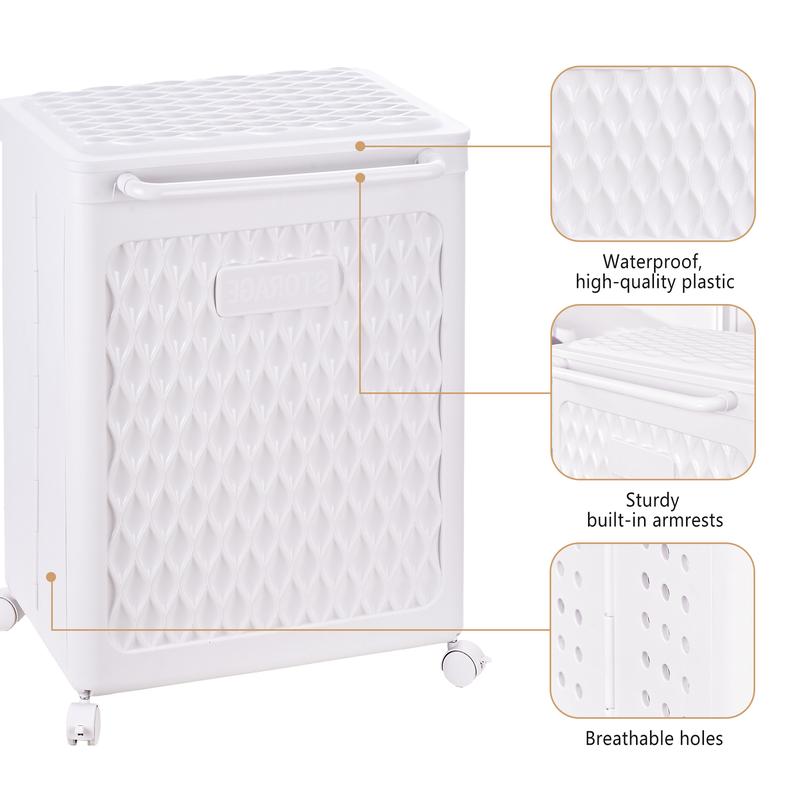 ·[Stylish Quilted Design Laundry Basket] With its sleek white color and textured quilted pattern, this laundry laundry hamper cart complements a variety of interior styles, from modern and minimalist to classic or farmhouse. Whether used in bedrooms, laundry rooms, or dormitories, it adds both functionality and style to your home organization.