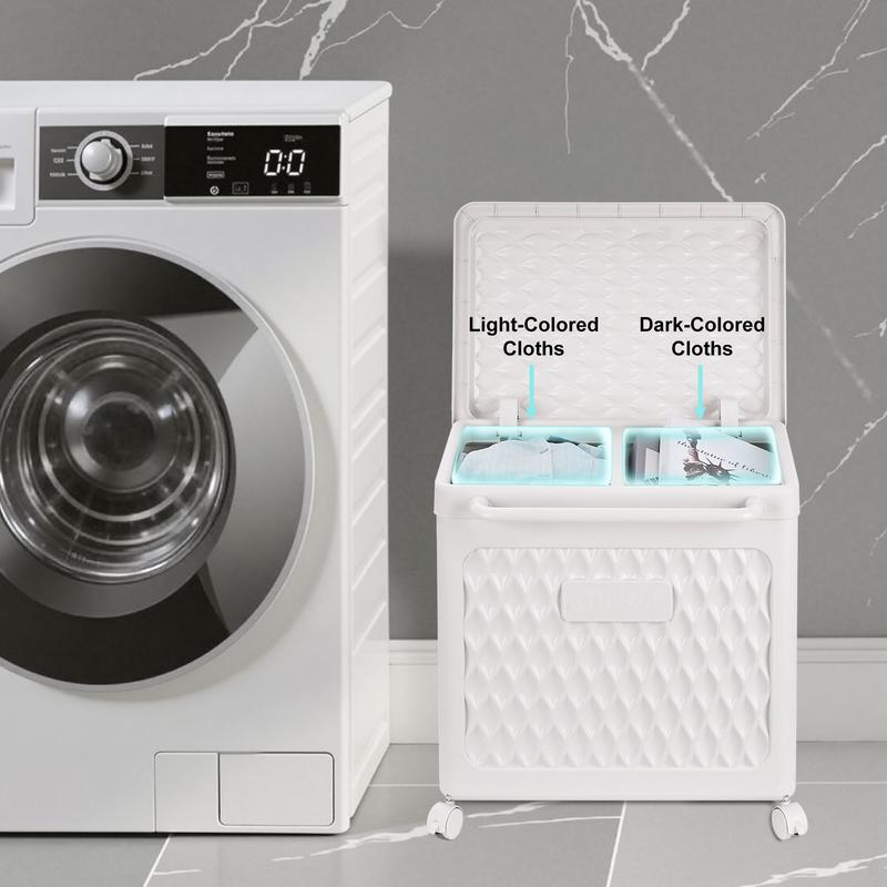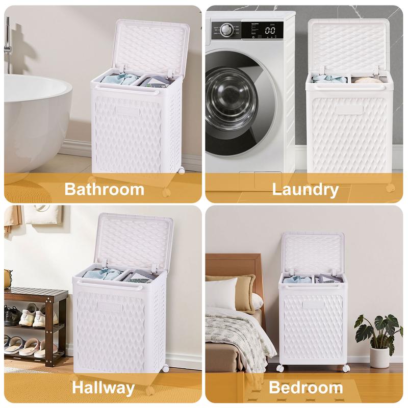 ·[Dual-Compartment Laundry Hamper] Designed with a built-in center divider, this 2-section laundry basket allows you to conveniently separate light and dark laundry, delicate fabrics, or organize clothes by household member. It’s an ideal laundry sorter for busy families, parents with kids, or shared living spaces where laundry organization.