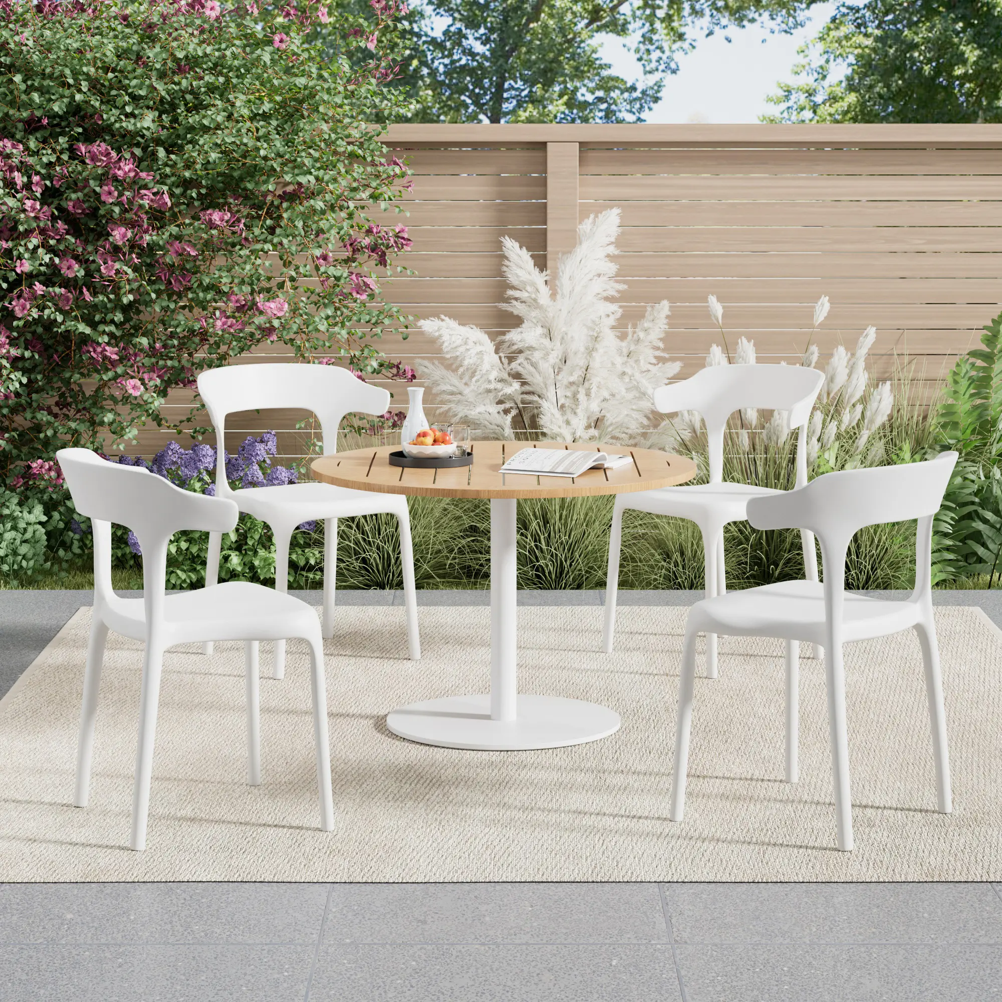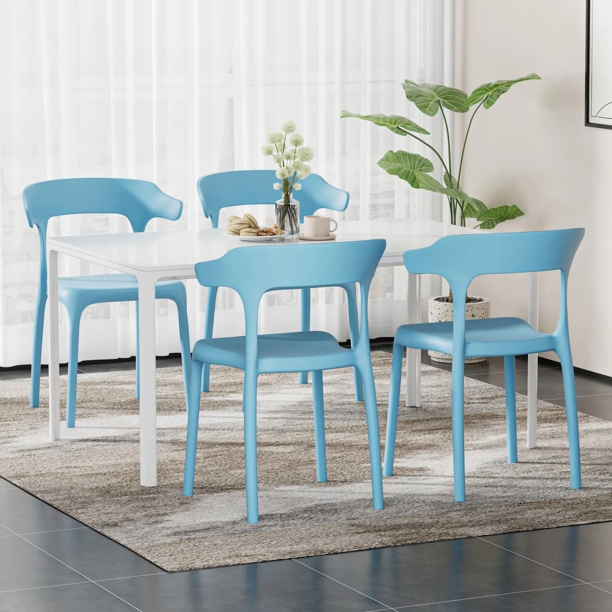 [Lightweight & Easy to Move] -- Each piece in this plastic dining chairs set of 4 is made from lightweight molded plastic, making the chairs effortless to lift, carry, and rearrange. Whether you’re adjusting your dining area, adding extra seating for guests, or using them as versatile chairs in home offices or meeting spaces, this 4-piece plastic chair set offers flexibility without sacrificing strength.