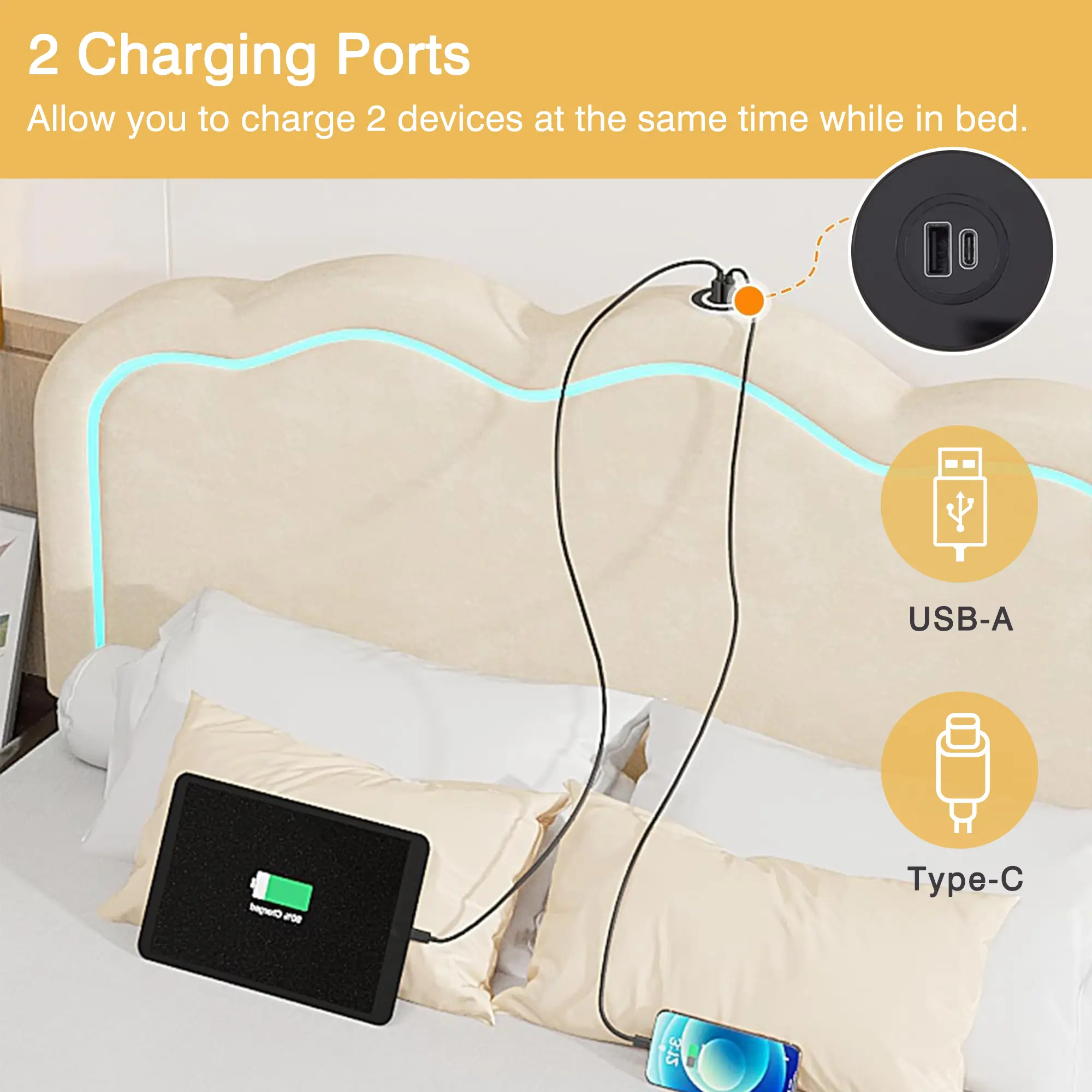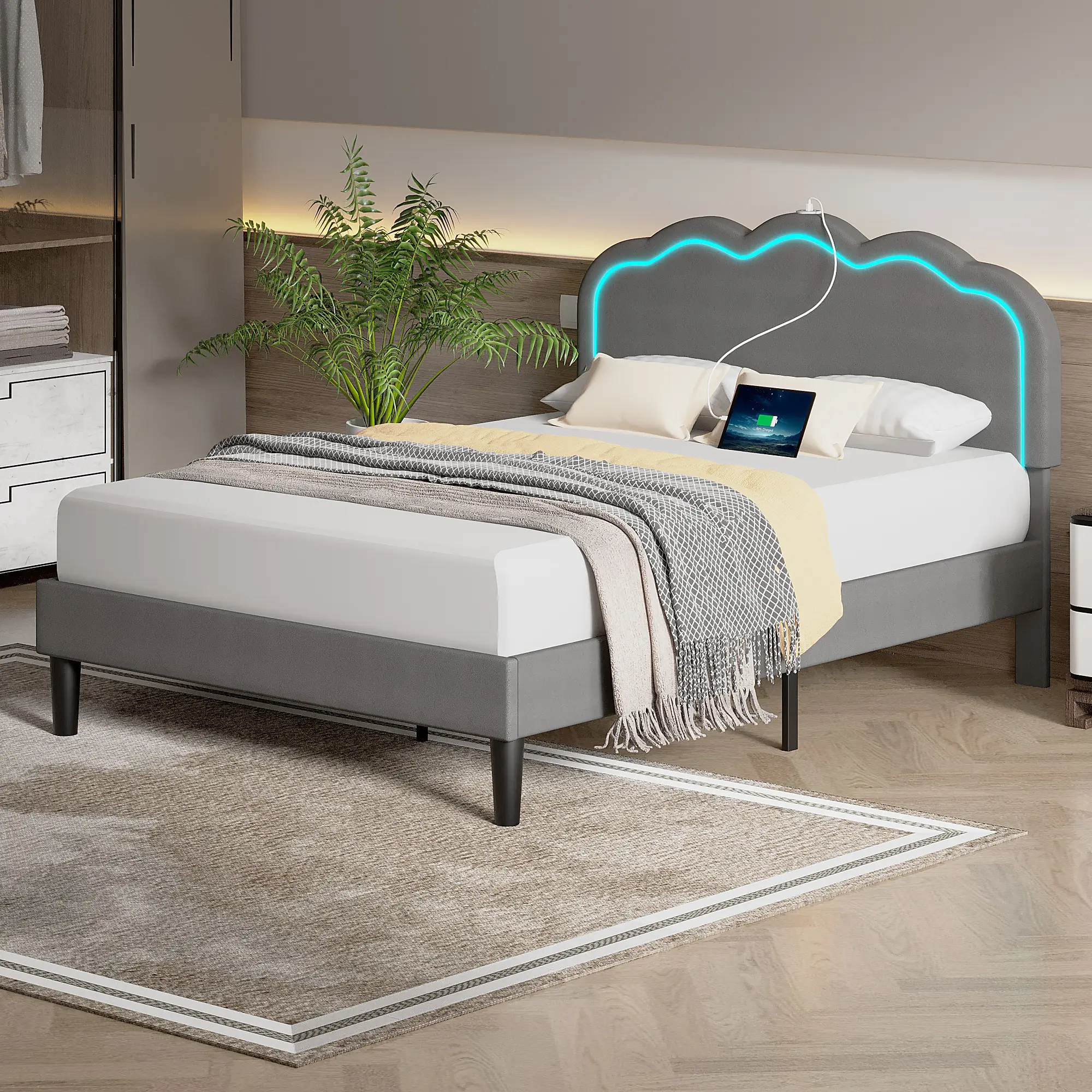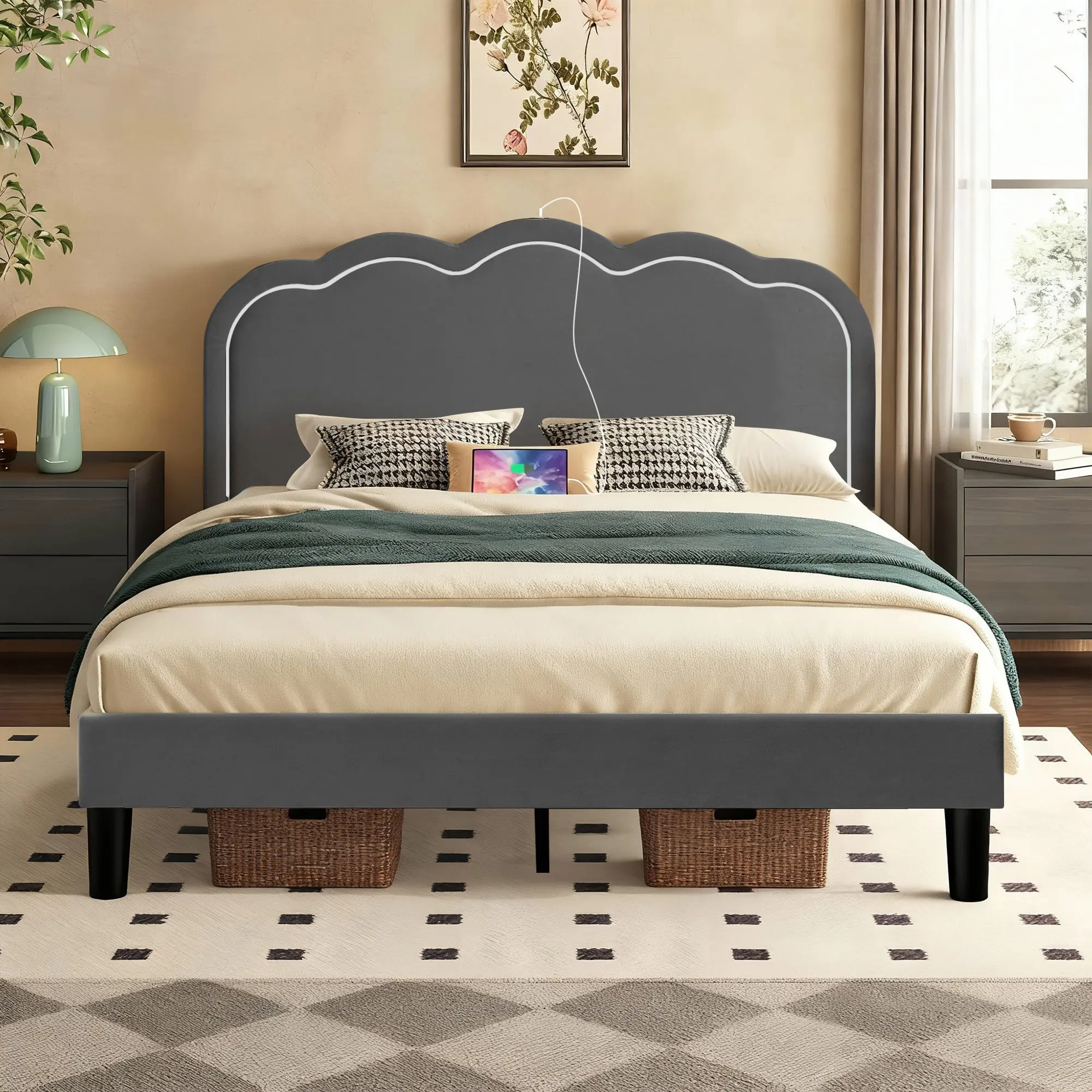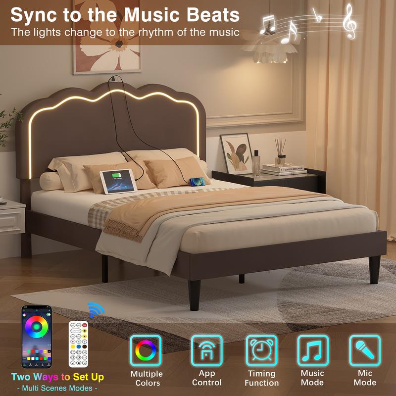 【Convenient Charging Station】This bed frame comes with a built-in charging station, including 1 USB port, allowing you to conveniently charge your electronic devices in bed, no more searching for outlets or using extension cords.