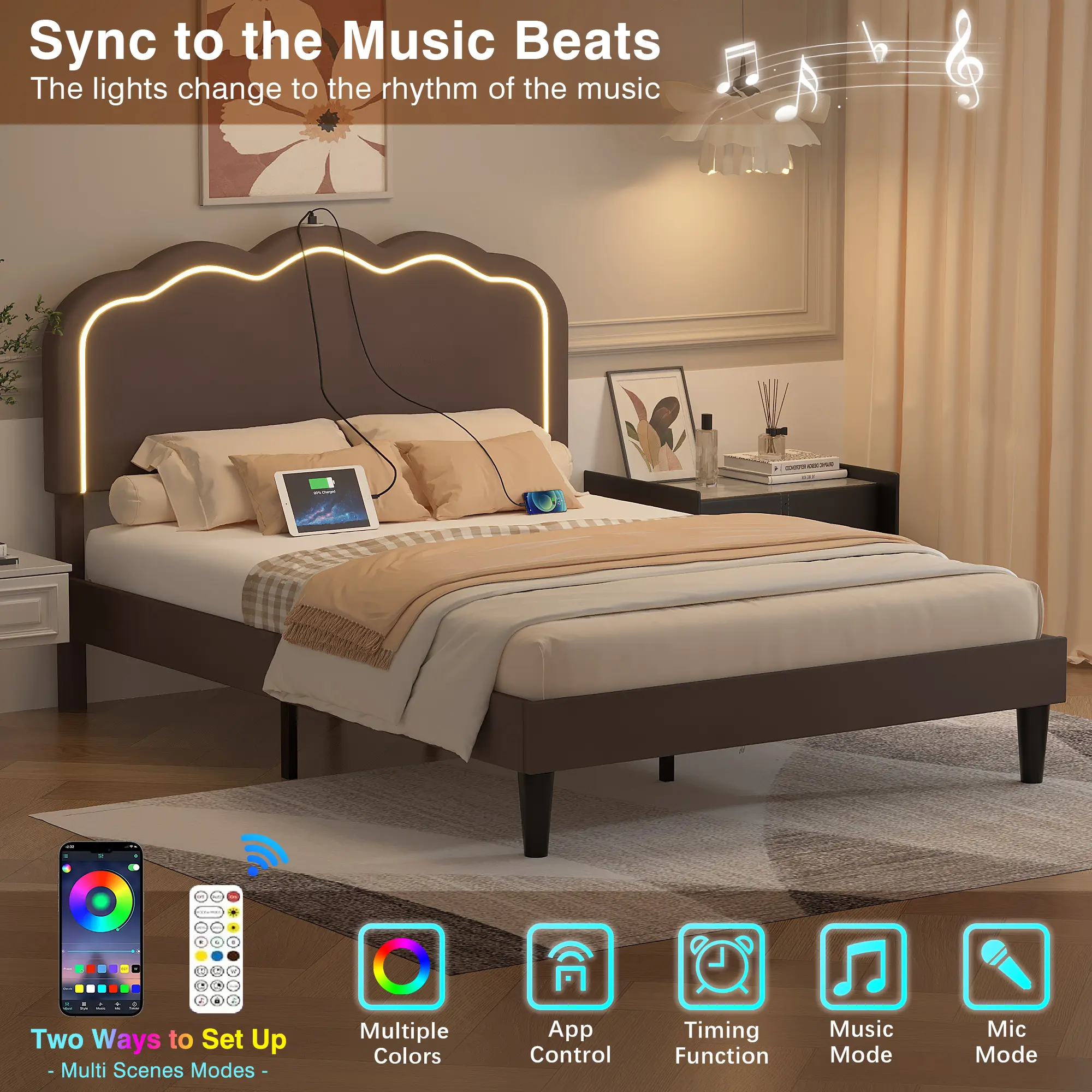 【Multifunctional LED Lights】LED lights add ambience to your bedroom, and with different color options and lighting effects, you can easily set the perfect mood for relaxing or entertaining.