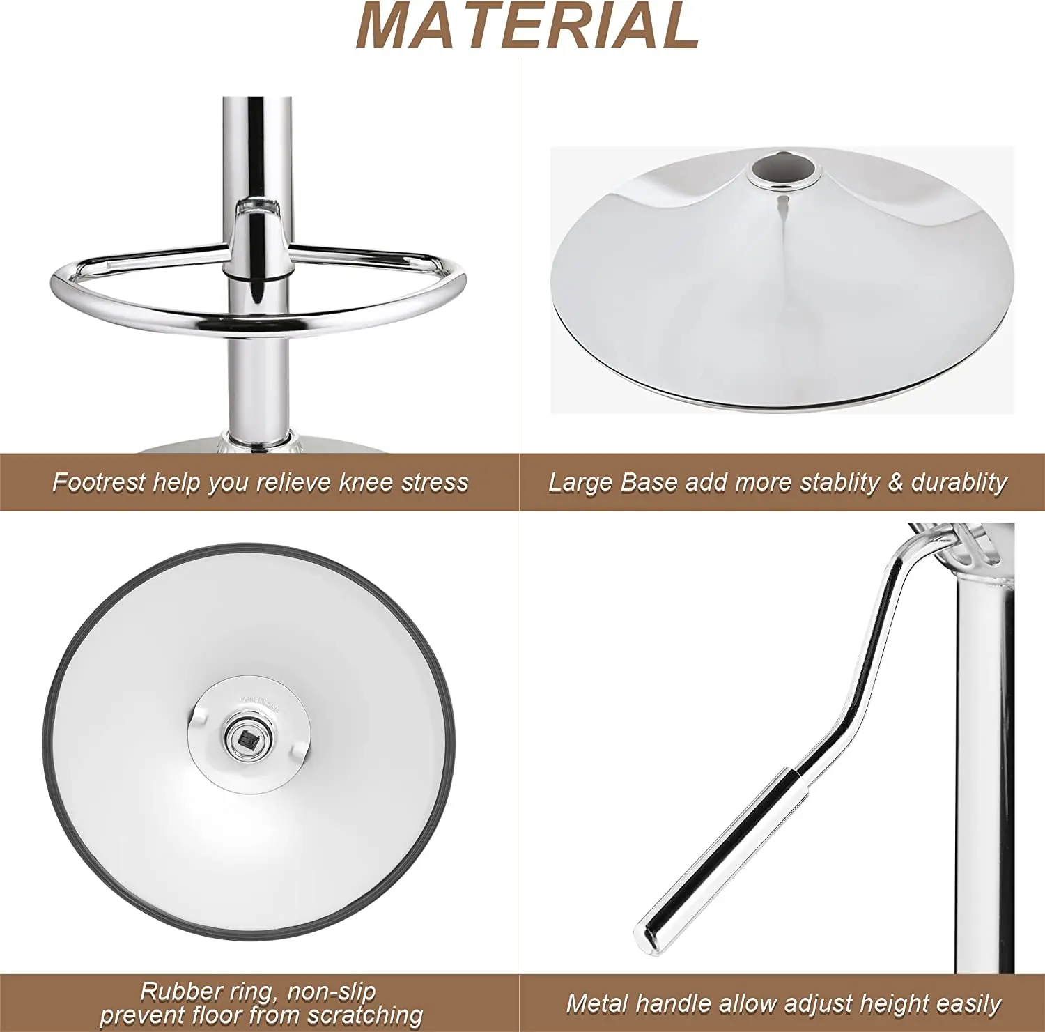 [Non-slip Rubber Ring Base] The large base with rubber ring on the bottom can prevent the stool from slipping loudly or leaving marks on the floor. The moisture-proof PU seat can protect the stool, this bar stool is the best choice for long-term use.