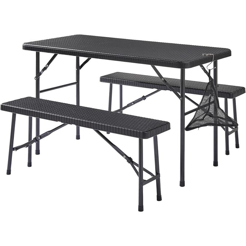 VECELO Dining Set for 4, Faux Rattan Folding Table with 2 Benches foldabletablebartop