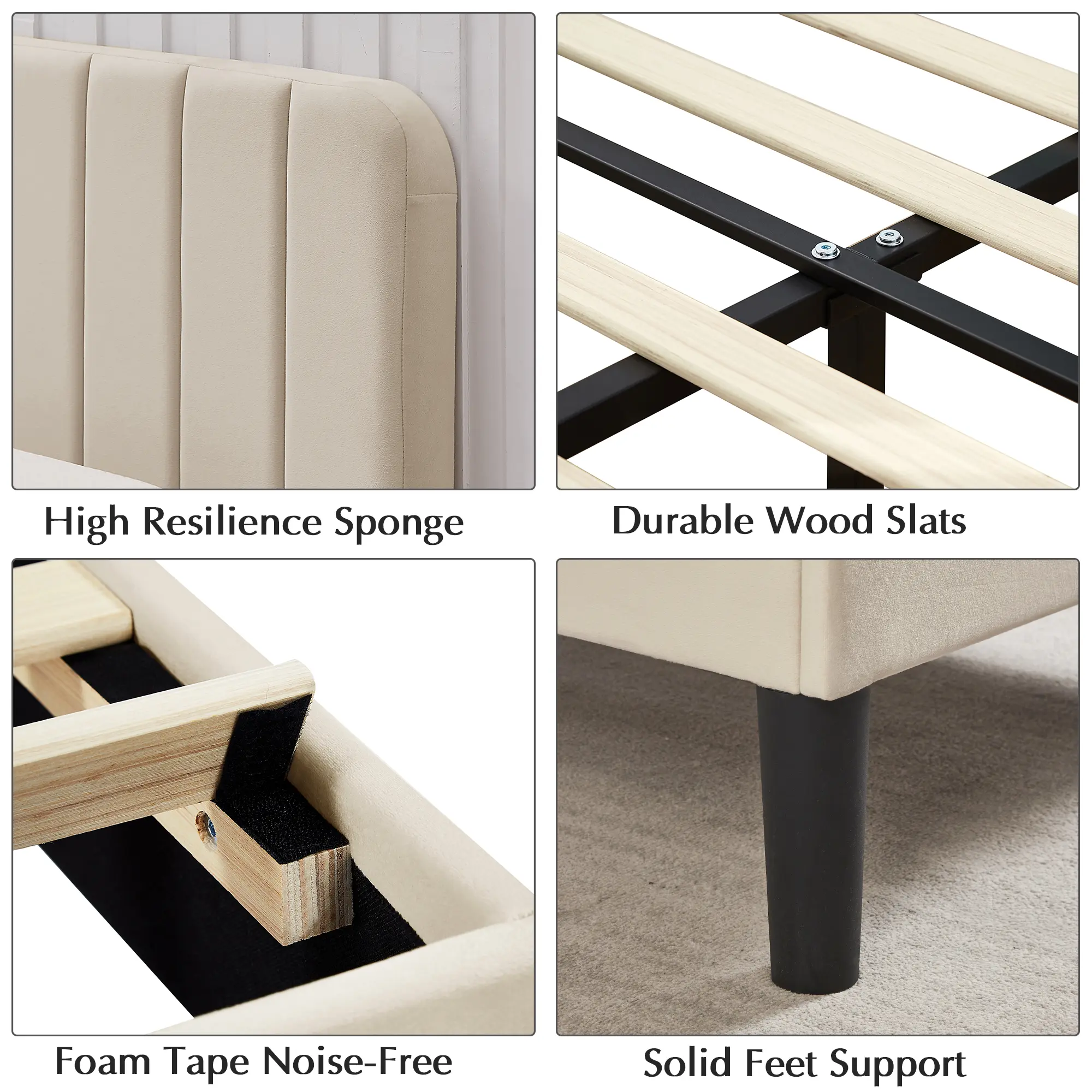 【Easy to Assemble】Each part of the bed frame is numbered with clear instructions. According to the instruction manual, the assembly can be easily completed.