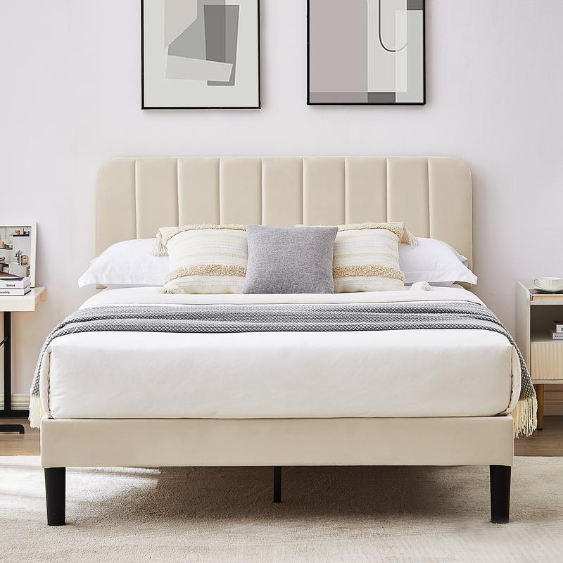 Material: Metal Frame๏ผWoodย Slats;ย MDF;Fabric(No box spring needed)