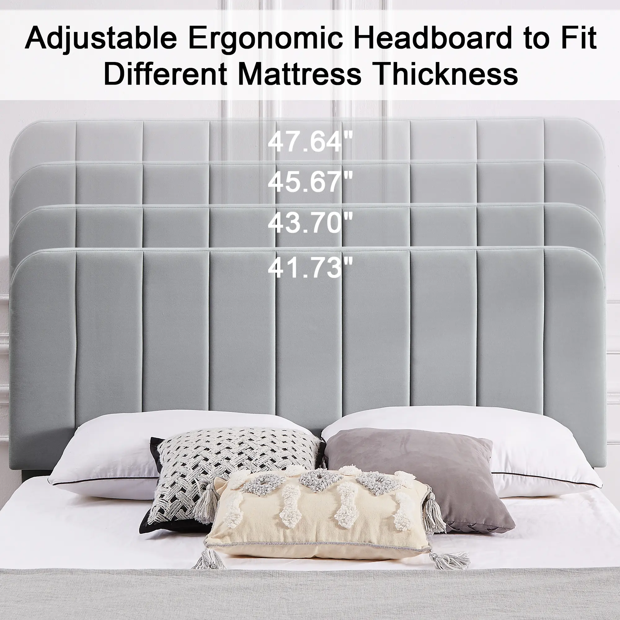 【Height Adjustable Headboard】Height adjustable slab headboard, ranging from 43.7" to 47.63", suitable for mattresses of any thickness and material, you can adjust it to the best height according to your needs.
