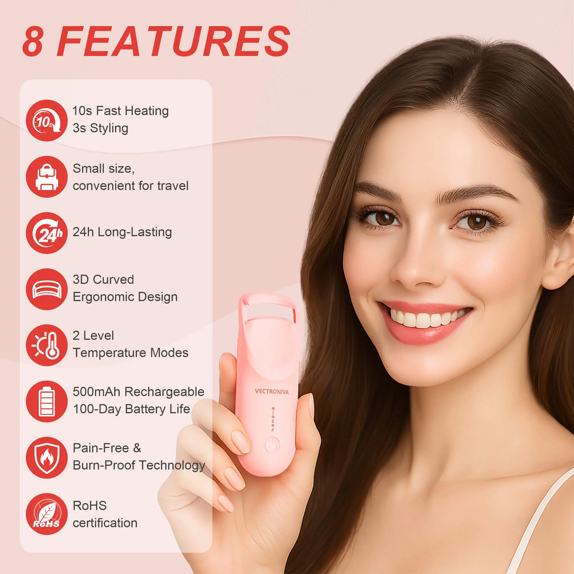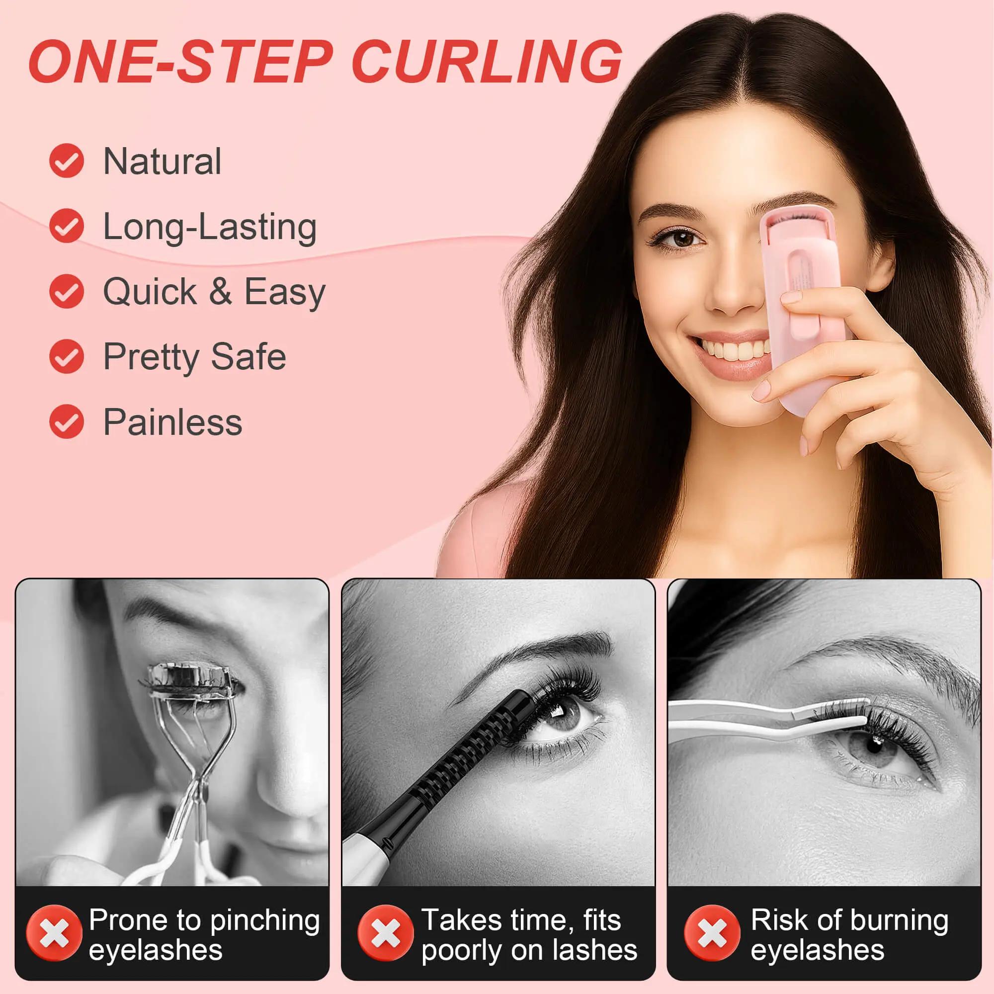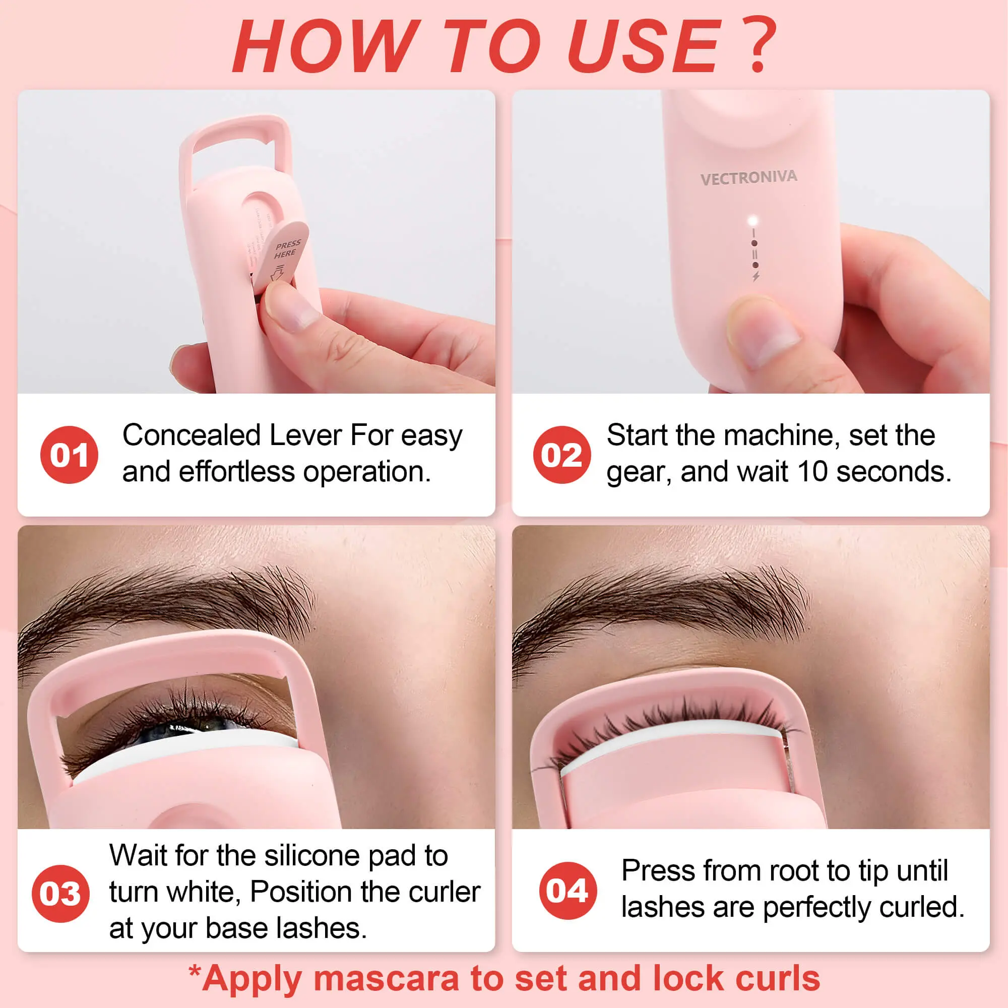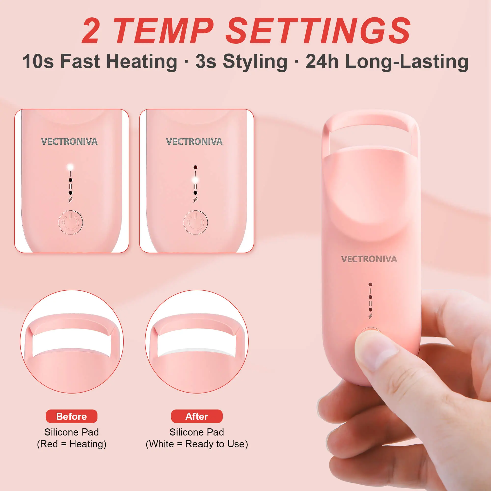 Get ready in seconds — the silicone heating pad evenly distributes warmth to style your lashes in one press.