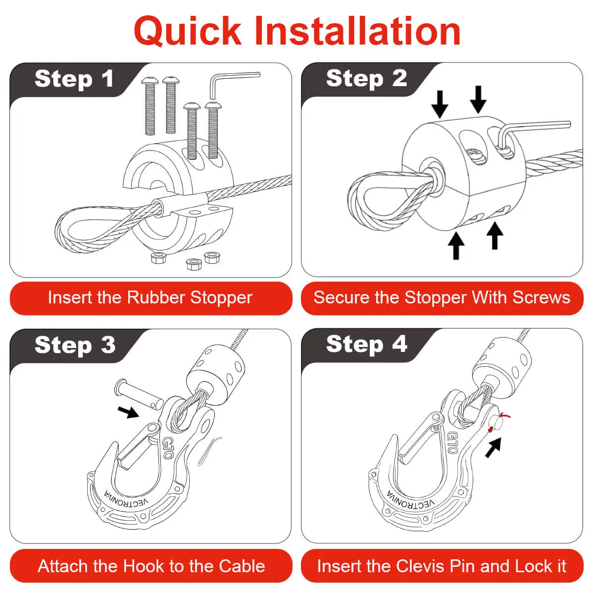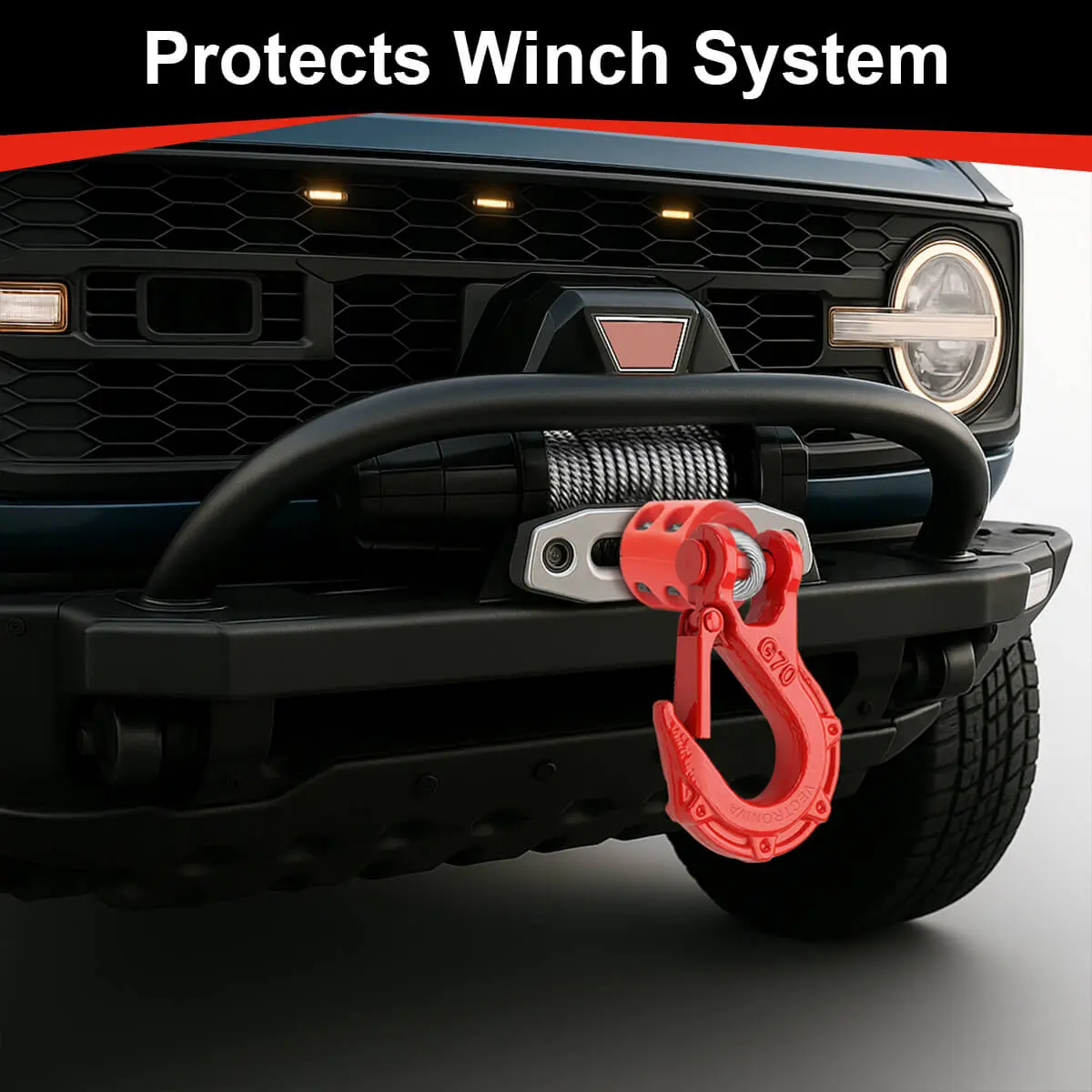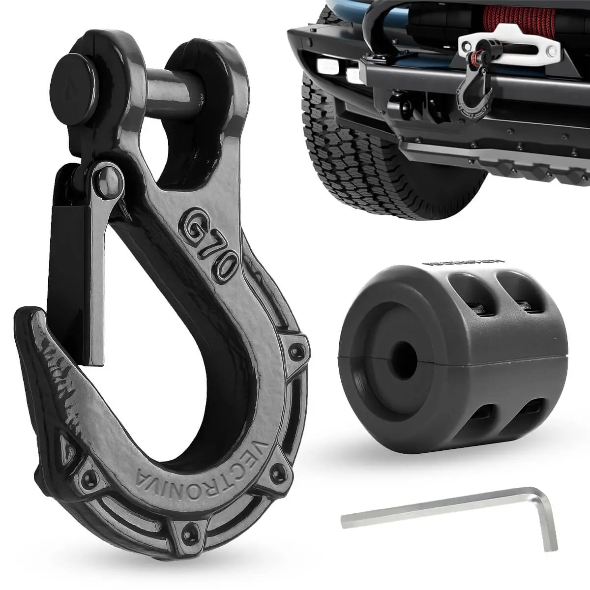 The Vectroniva Heavy Duty Winch Hook & Cable Stopper Set is your ultimate winch accessory for safe and reliable recovery. Made from Grade 70 forged steel, this 3/8" winch hook delivers a massive breaking strength of 37,478 lbs, giving you total confidence for tough jobs.