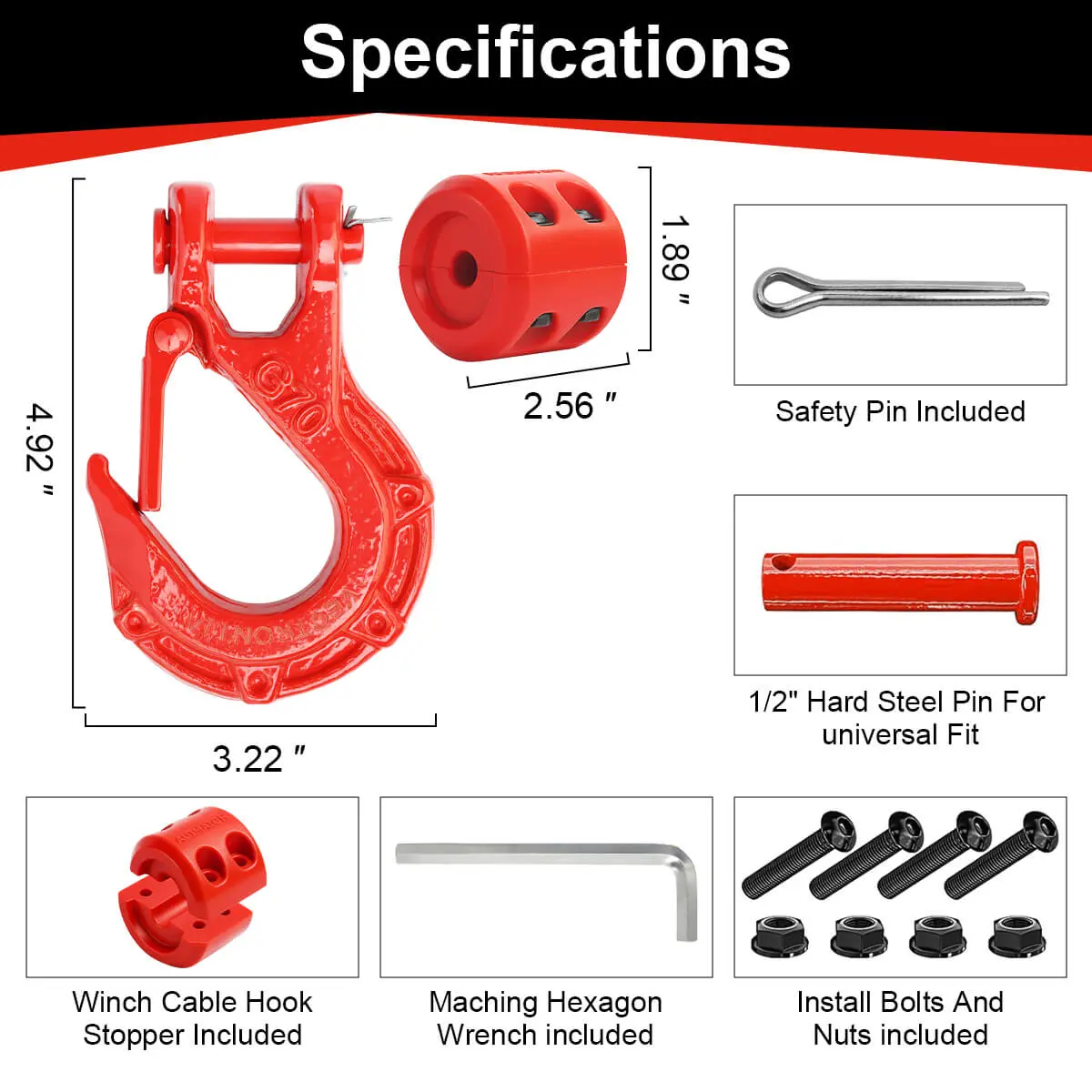 Equipped with a UV-resistant rubber winch cable stopper, it prevents collisions between the hook and winch fairlead, reducing wear on your rope hook and winch motor. The stopper’s split design and included Allen wrench make installation fast and easy.
