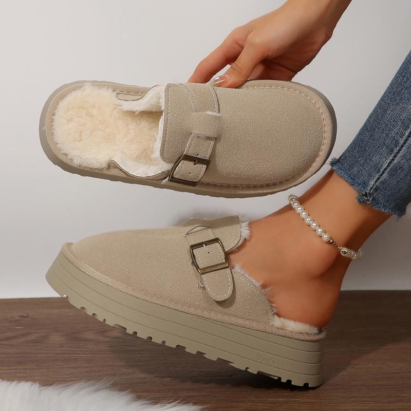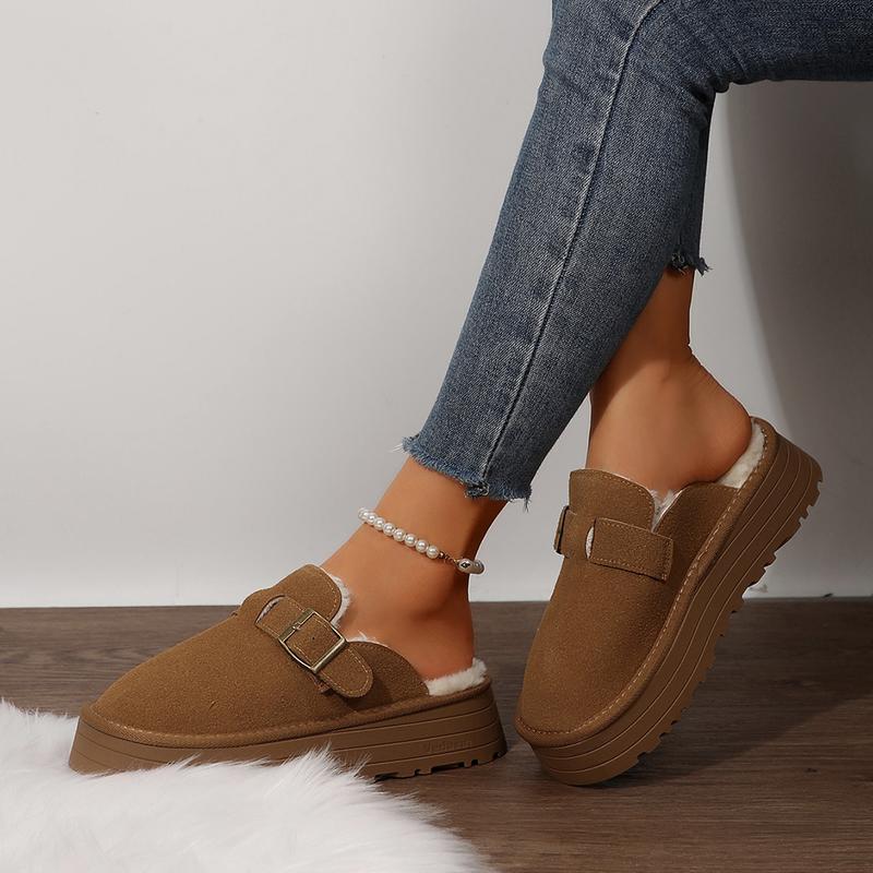 ăClassic Versatile Designă:Women's platform slippers are design with round toe and short ankle conforms to the structure of human feet. With the classic design of suede, rubber sole and faux Plush matching, women's house slippers can be easily matched with any outfit.they effortlessly complement your winter coat and jeans.