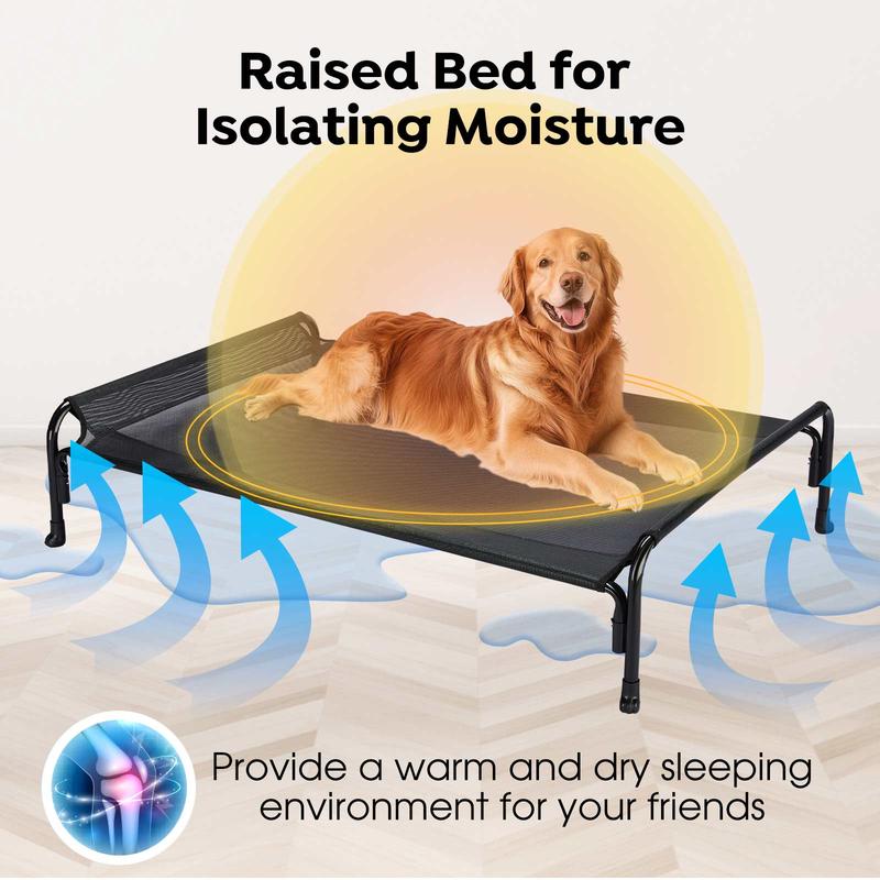 ·All-Season Comfort: The Teslin Mesh mat not only allows the air to flow, but also allows the water to penetrate, keeping your pet cool in summer; The elevated dog bed lifts your dog 8.2 inches off the hard ground, mud or wet grass, alleviating joints pressure and keeping health