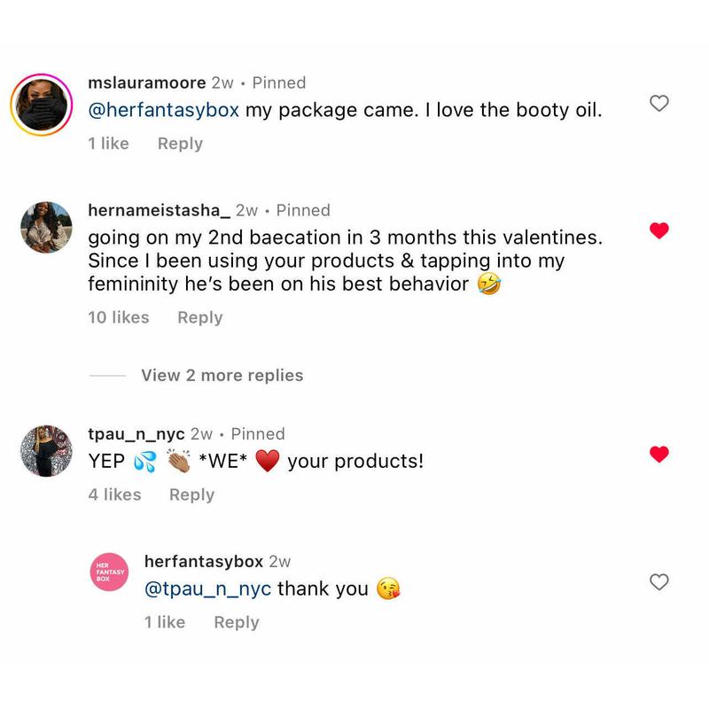 I had order me some that Her Fantasy Box and when I tell yall won’t be disappointed at all it work vey good everything it said soft skin that yummy body wash and body splash and slippery box you better get you some this product is the bomb bayee