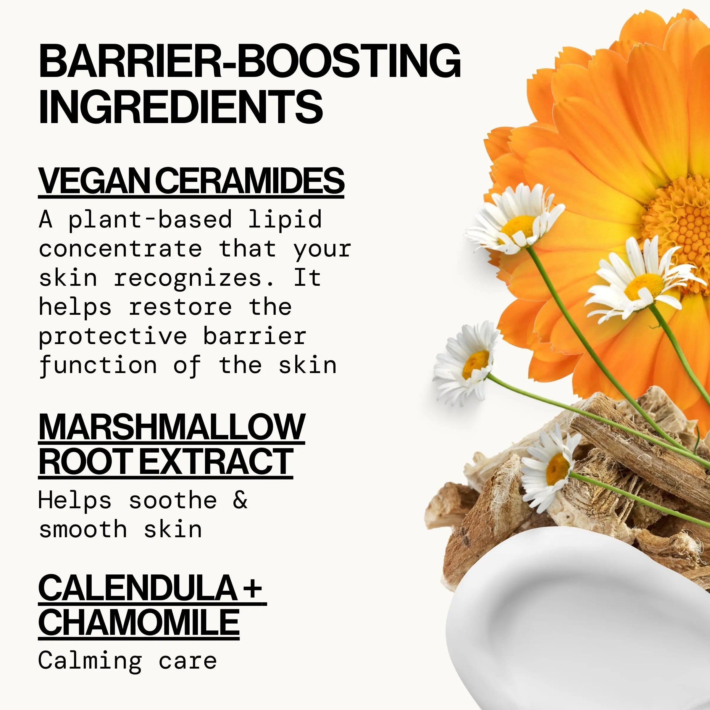 Marshmallow Root extract helps soothe & smooth skin