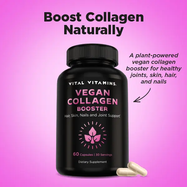 Collagen production declines as we age, but our Vegan Collagen Booster offers a plant-based solution to keep your skin supple and joints supported. It’s a direct alternative to animal-derived collagen, crafted 100% free from animal ingredients, dairy, and gluten.