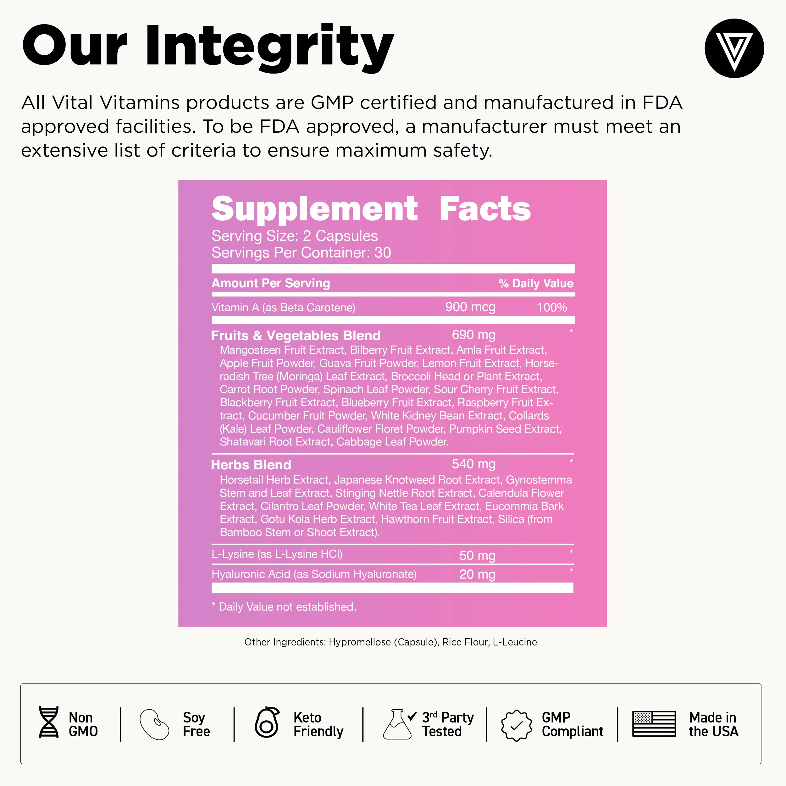 These carefully selected components work synergistically to promote skin elasticity, hydration, and firmness, while also strengthening nails and supporting joint health. Collagen is the most abundant protein in your body, making up 80% of your skin’s structure—essential for a youthful appearance.