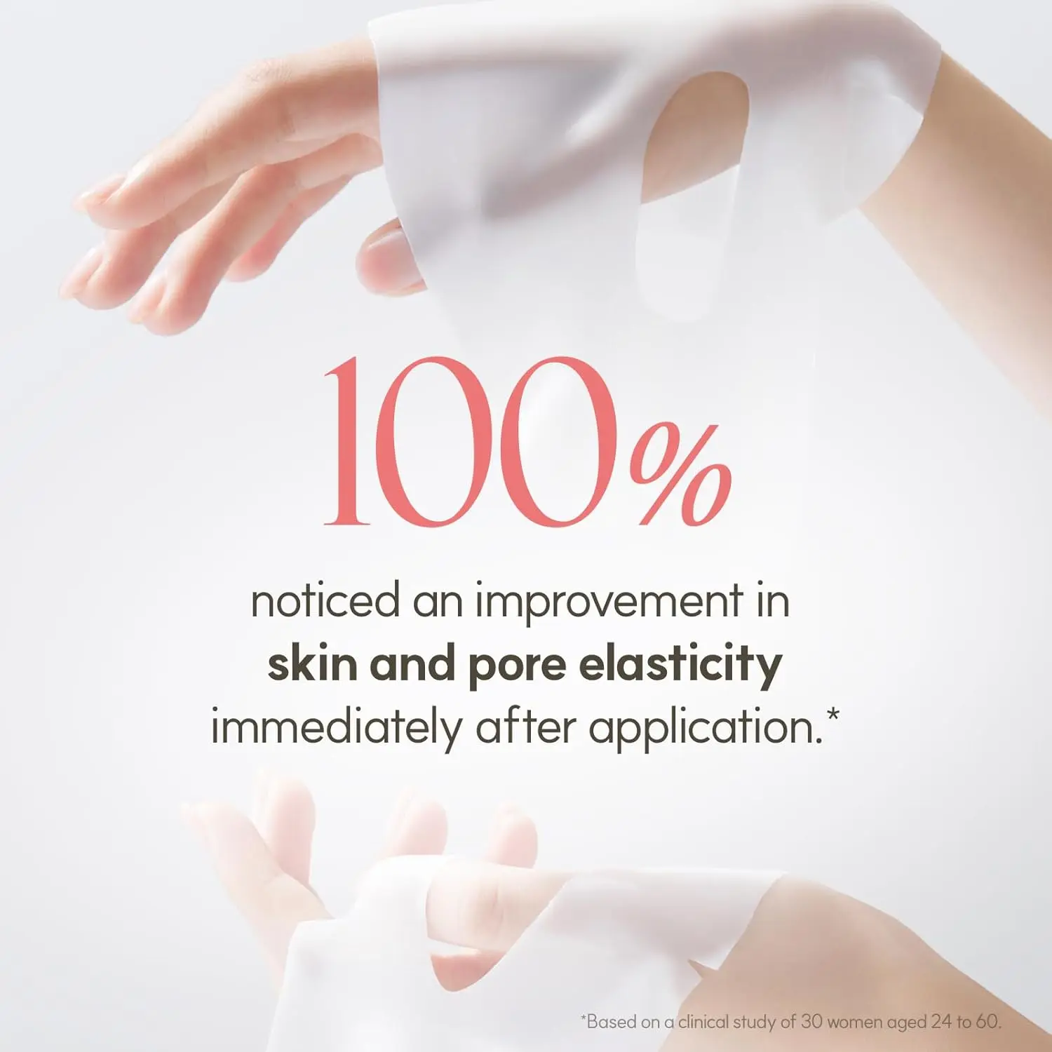 Plant-derived collagen improves elasticity and minimizes the look of fine lines and wrinkles for visibly firmer, younger-looking skin. Flexible hydrogel mask transforms and becomes translucent as your skin absorbs the active ingredients. Non-comedogenic tested.