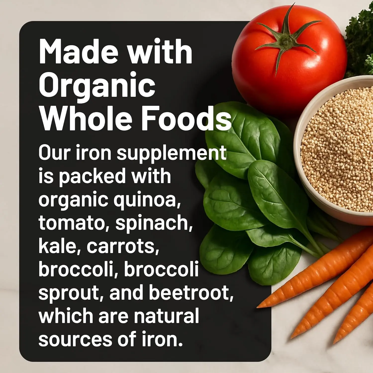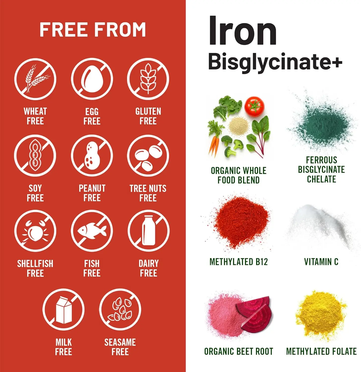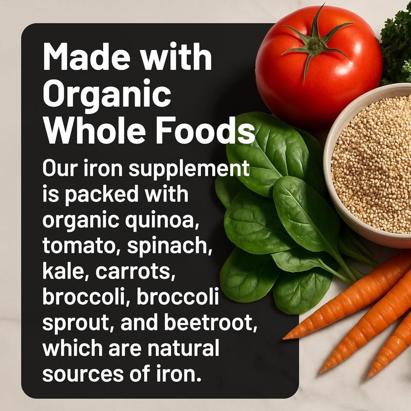 ·Organic Whole Food Blend: This Iron Bisglycinate Plus is vegan, gluten-free, and formulated with organic whole foods like carrots, broccoli, and beetroot to provide extra iron and antioxidants from natural sources.*